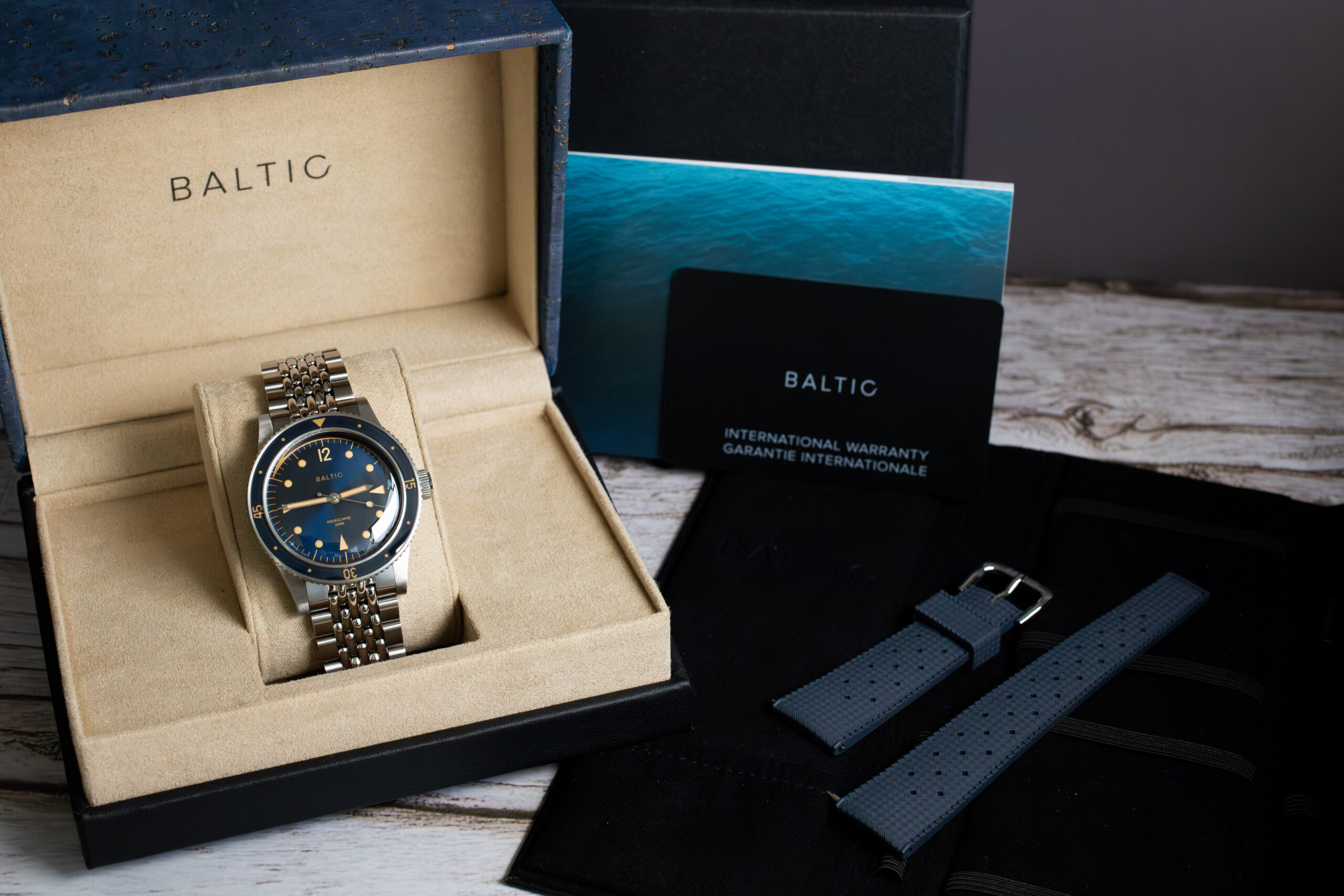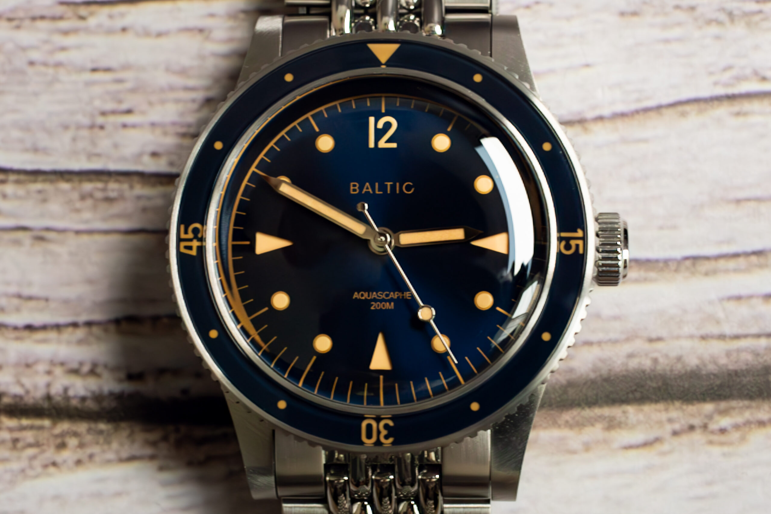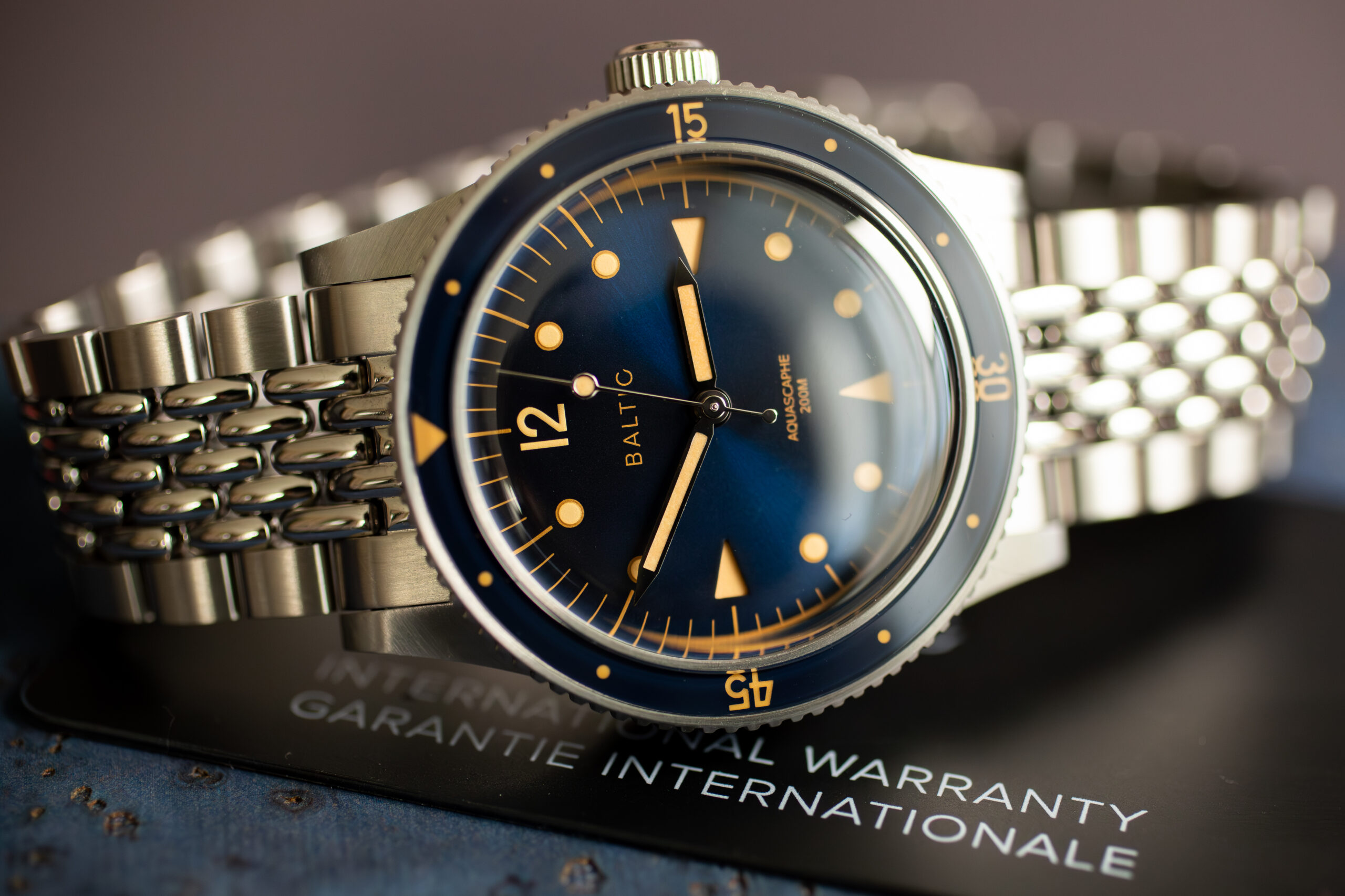 This Aquascaphe Classic Blue Gilt suits collectors seeking authentic vintage diving aesthetics with modern durability and proven 200m water resistance. The gilt detailing and vintage proportions create distinctive character whilst the sapphire crystal and bezel construction ensure practical tool watch capability that honours traditional diving watch functionality.