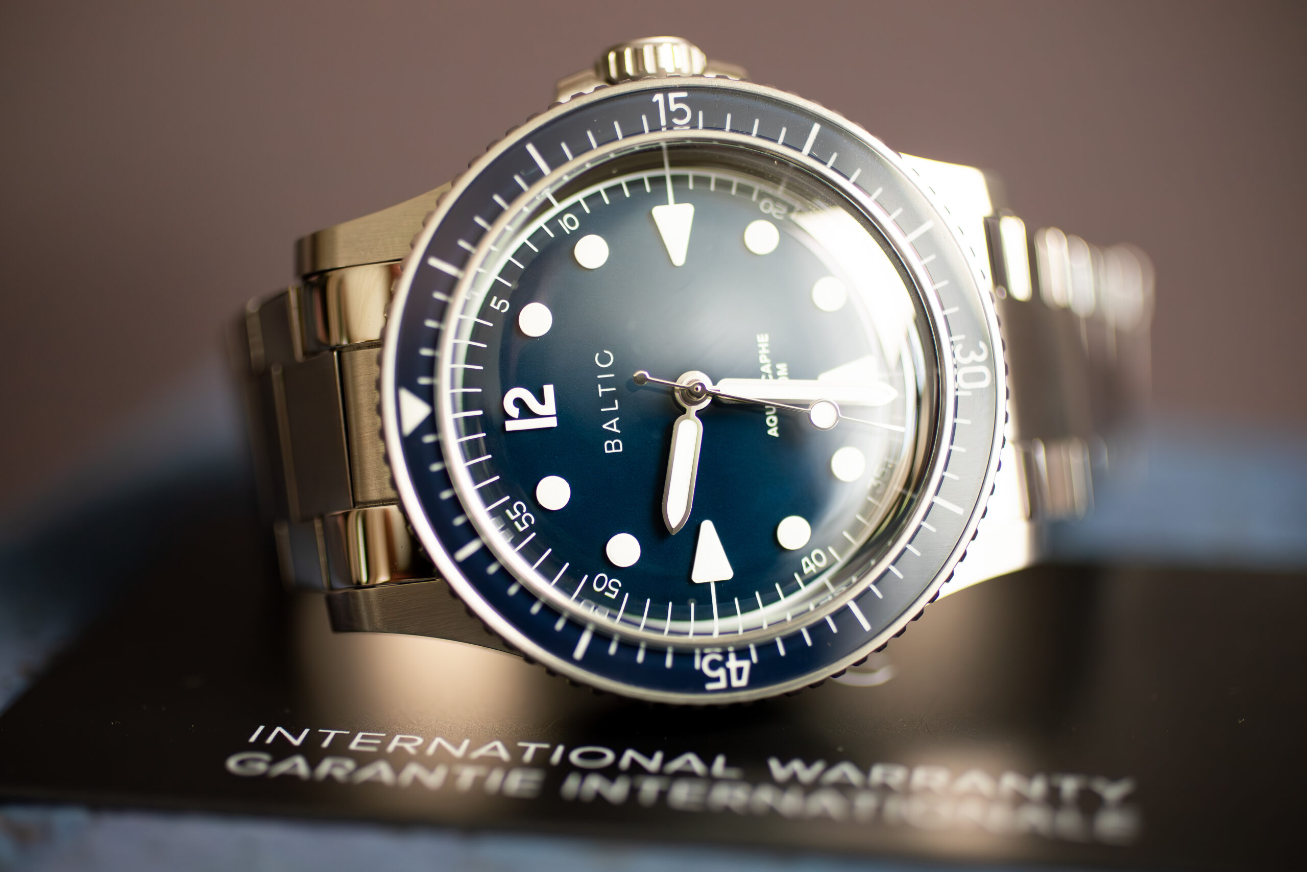 The Baltic Aquascaphe MK2 Blue 39.5mm (Ref. AQU21BLUE12) represents seven years of refinement to Baltic’s longest-standing design through comprehensive upgrades that preserve the original’s vintage-inspired spirit whilst delivering enhanced technical capability. The “Maxi Dial” features 0.4mm-thick circled lumicast appliques made from Super-LumiNova BGW9 creating three-dimensional “super indexes” for superior legibility both in daylight and darkness.