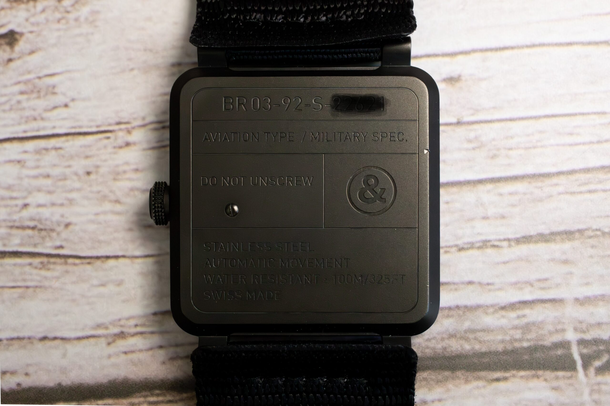 The Bell & Ross BR 03-92 Black 42mm (Ref. BR03-92) delivers professional tool watch capability through stainless steel construction with black DLC coating that meets demands of extreme sports professionals including astronauts, fighter pilots, divers, bomb disposal experts, and elite police officers. The distinctive square case design inspired by aircraft cockpit instruments creates unmistakable character whilst the black dial ensures optimal legibility in demanding operational environments.