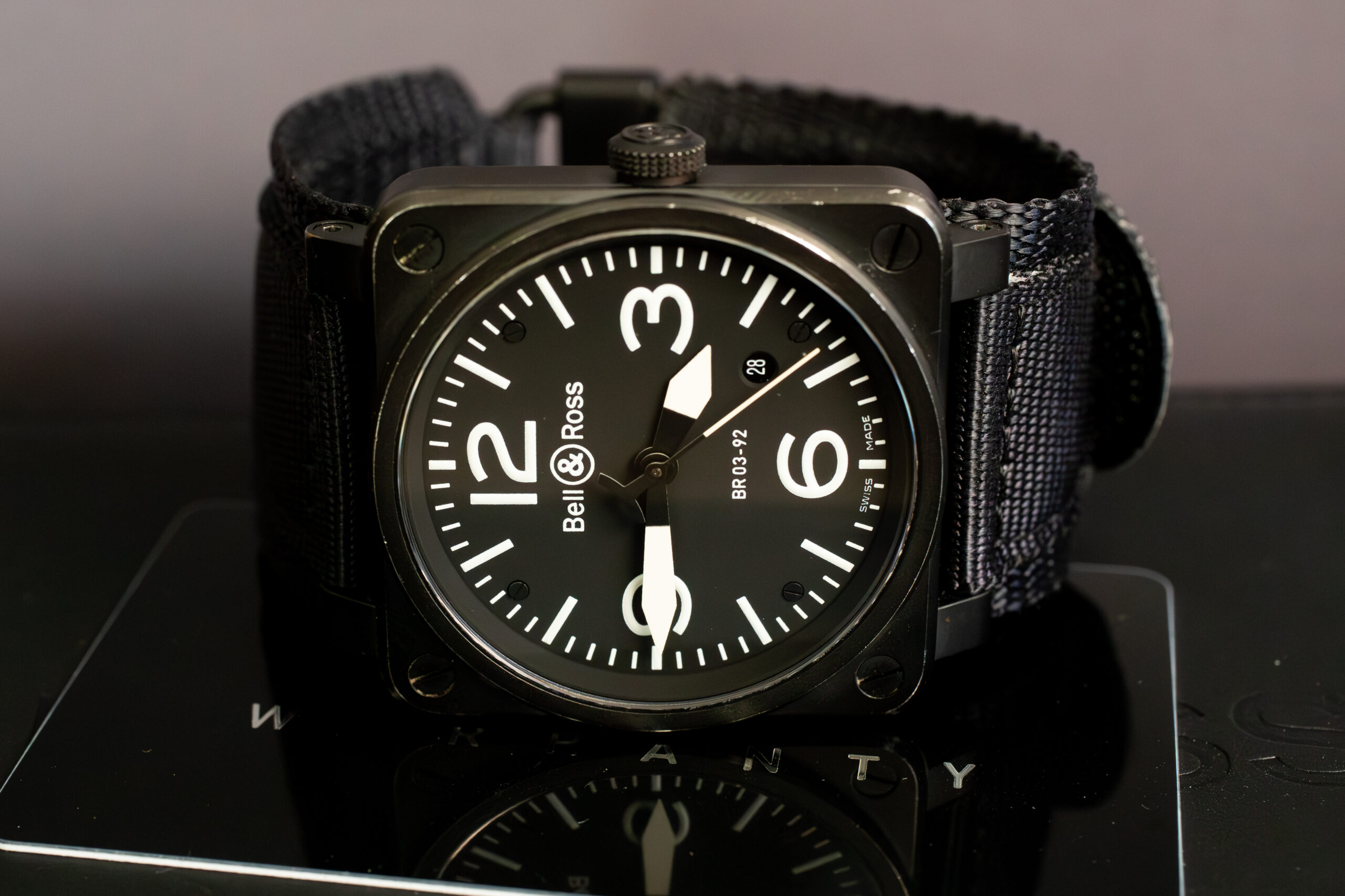 This BR 03-92 Black suits professionals requiring proven tool watch capability with distinctive aircraft-inspired design and robust construction for extreme environments. The professional user adoption by military and emergency services validates authentic capability whilst the iconic square case and DLC coating create unmistakable Bell & Ross character that bridges professional functionality with contemporary design.