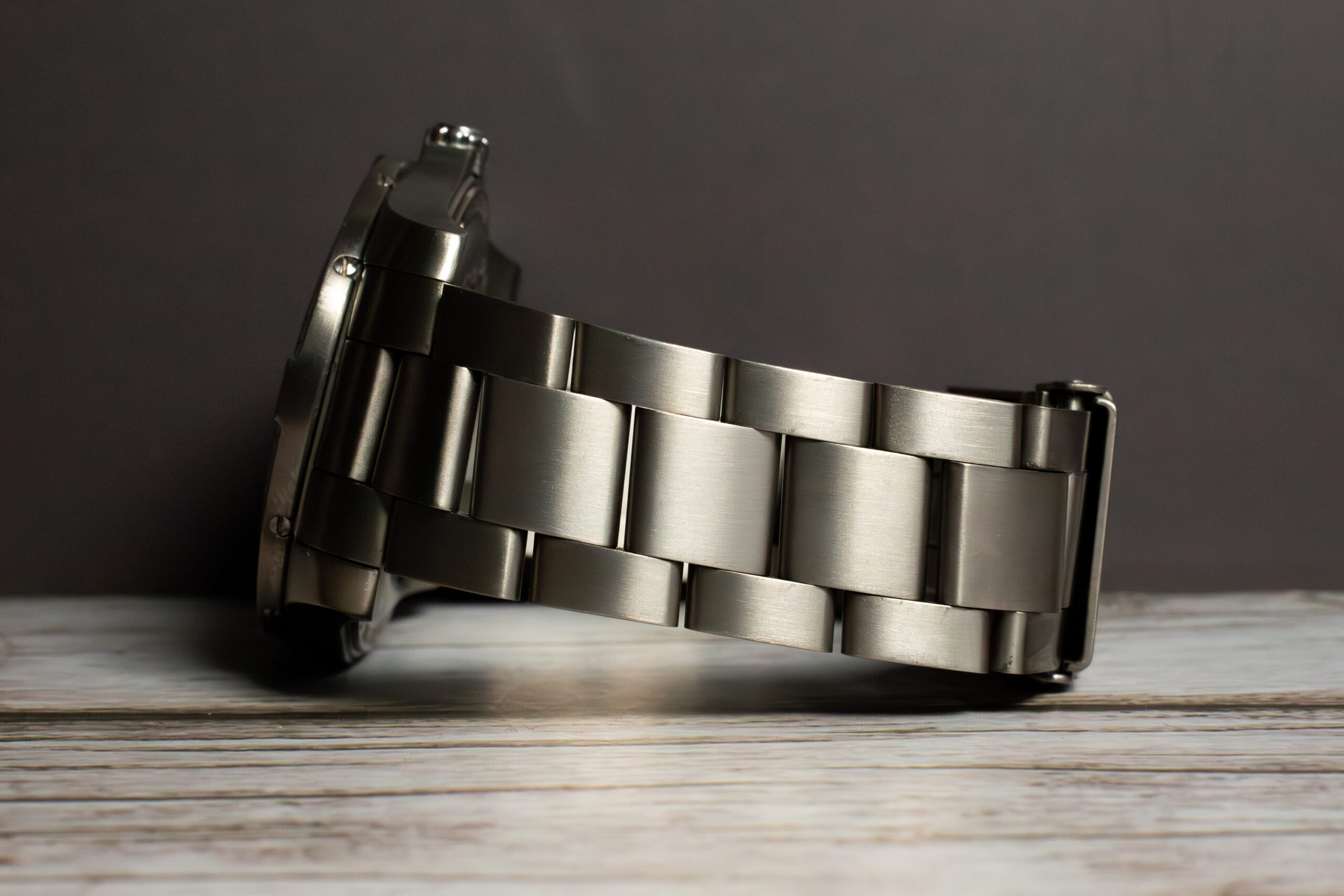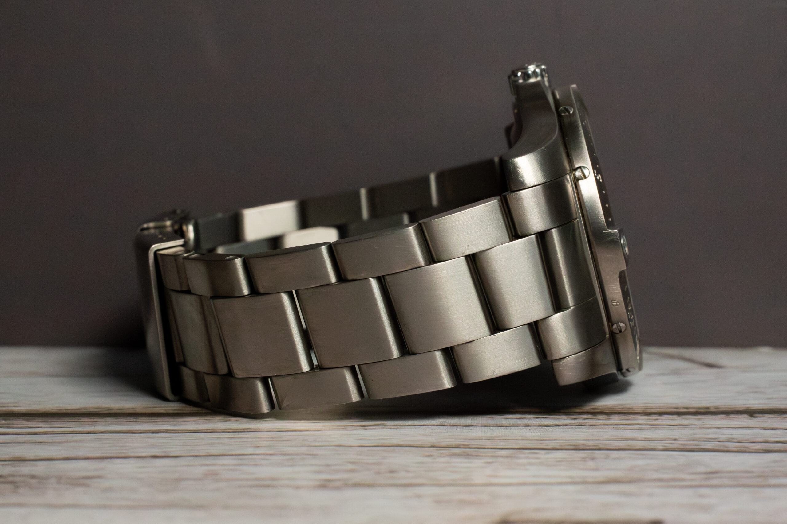 The titanium bracelet with folding clasp creates cohesive lightweight construction whilst the unidirectional ratcheted bezel provides additional timing reference. The crown-activated control system enables access to multiple functions without additional pushers, maintaining clean case profile.