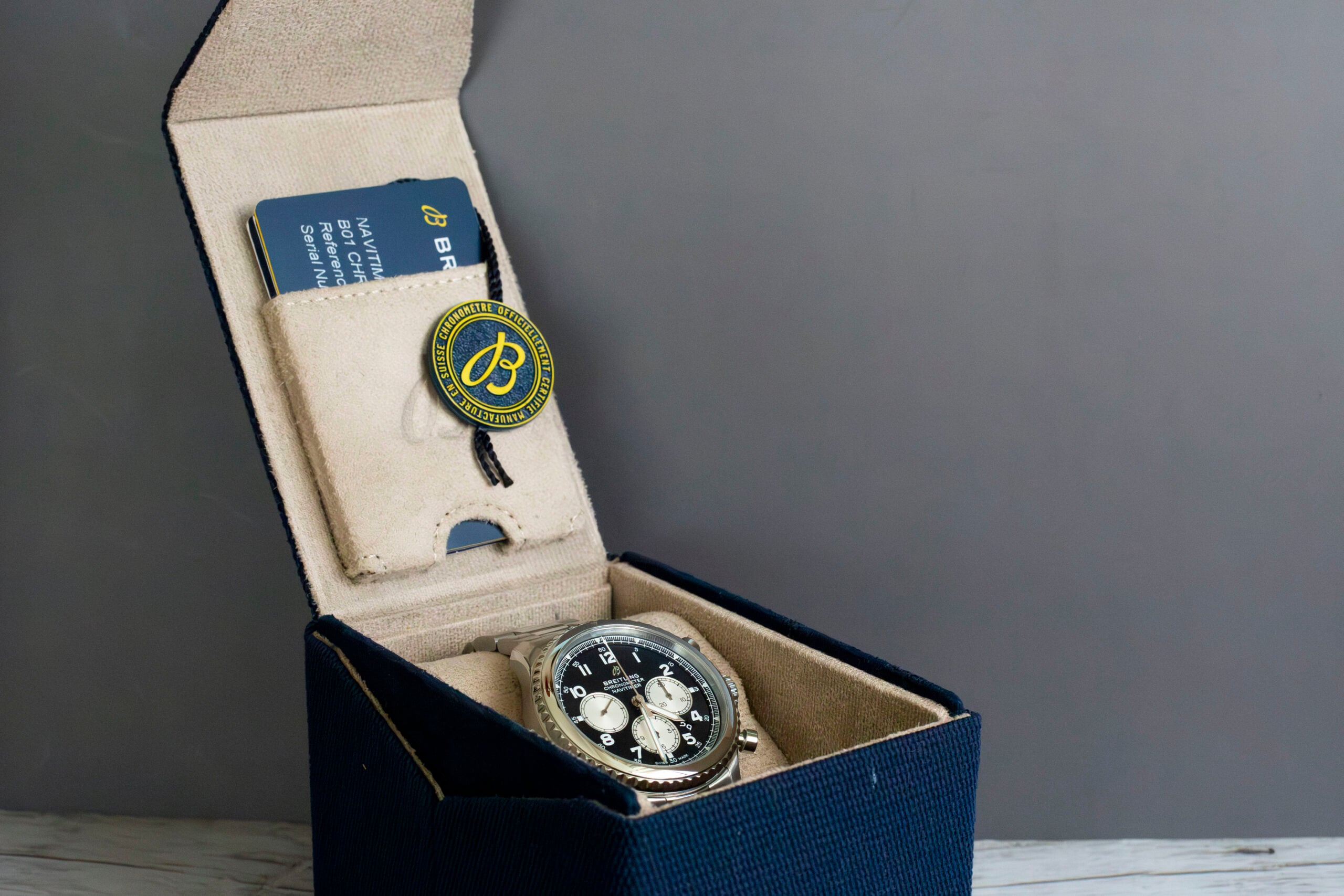 This Navitimer 8 suits buyers who want Breitling’s aviation heritage in a more accessible, contemporary package. The Huit Aviation Department connection validates authentic aviation credentials whilst the minimalist approach appeals to those who prefer clean aesthetics over computational complexity. It bridges traditional pilot watch heritage with modern luxury chronograph expectations, offering genuine aviation functionality without the learning curve of traditional navigation instruments.