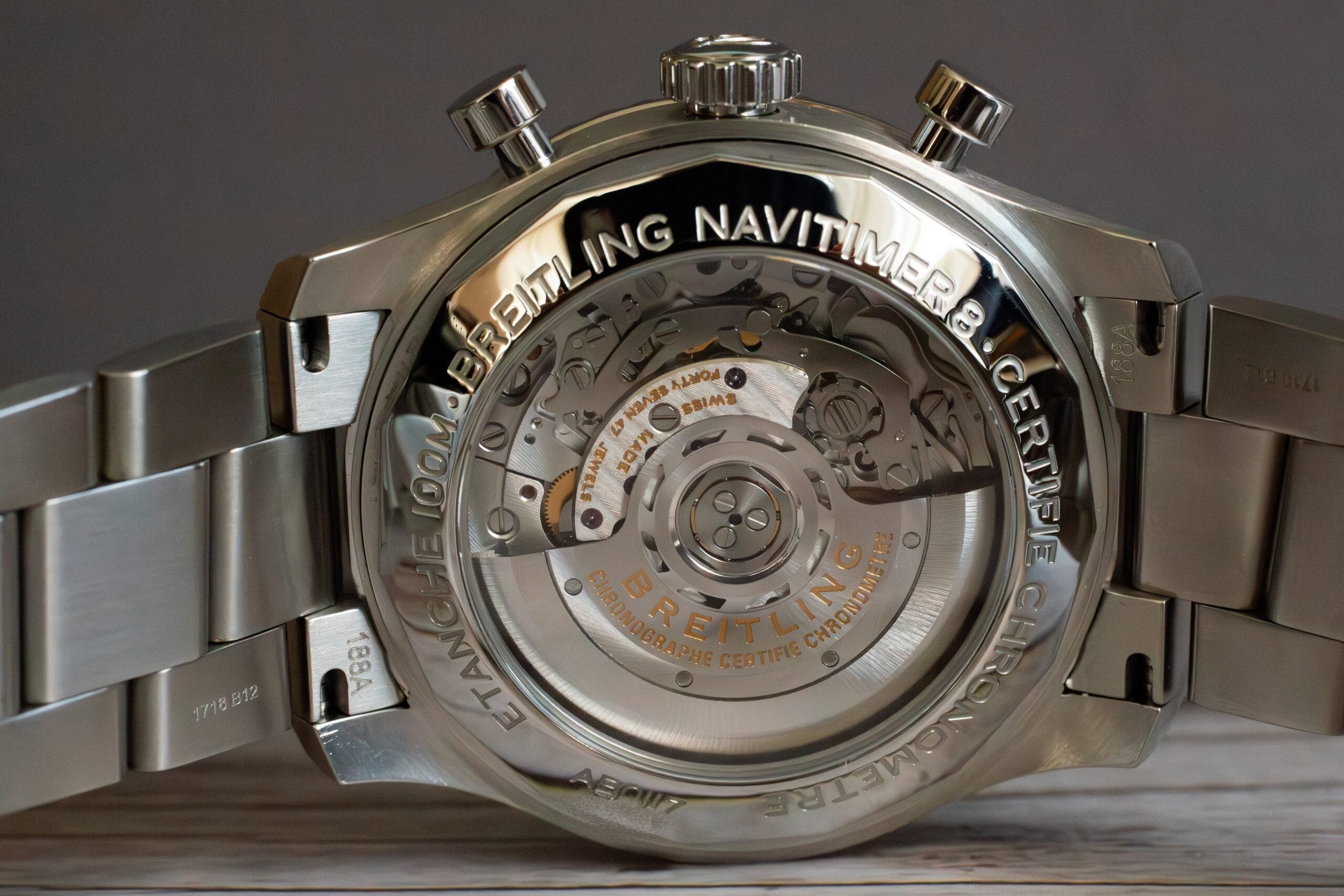 The Breitling 01 Manufacture movement delivers COSC certification with 70-hour power reserve, enabling weekend-proof operation essential for irregular flight schedules. The column wheel chronograph construction provides smooth operation with 30-minute and 12-hour totalizers for comprehensive timing capability.