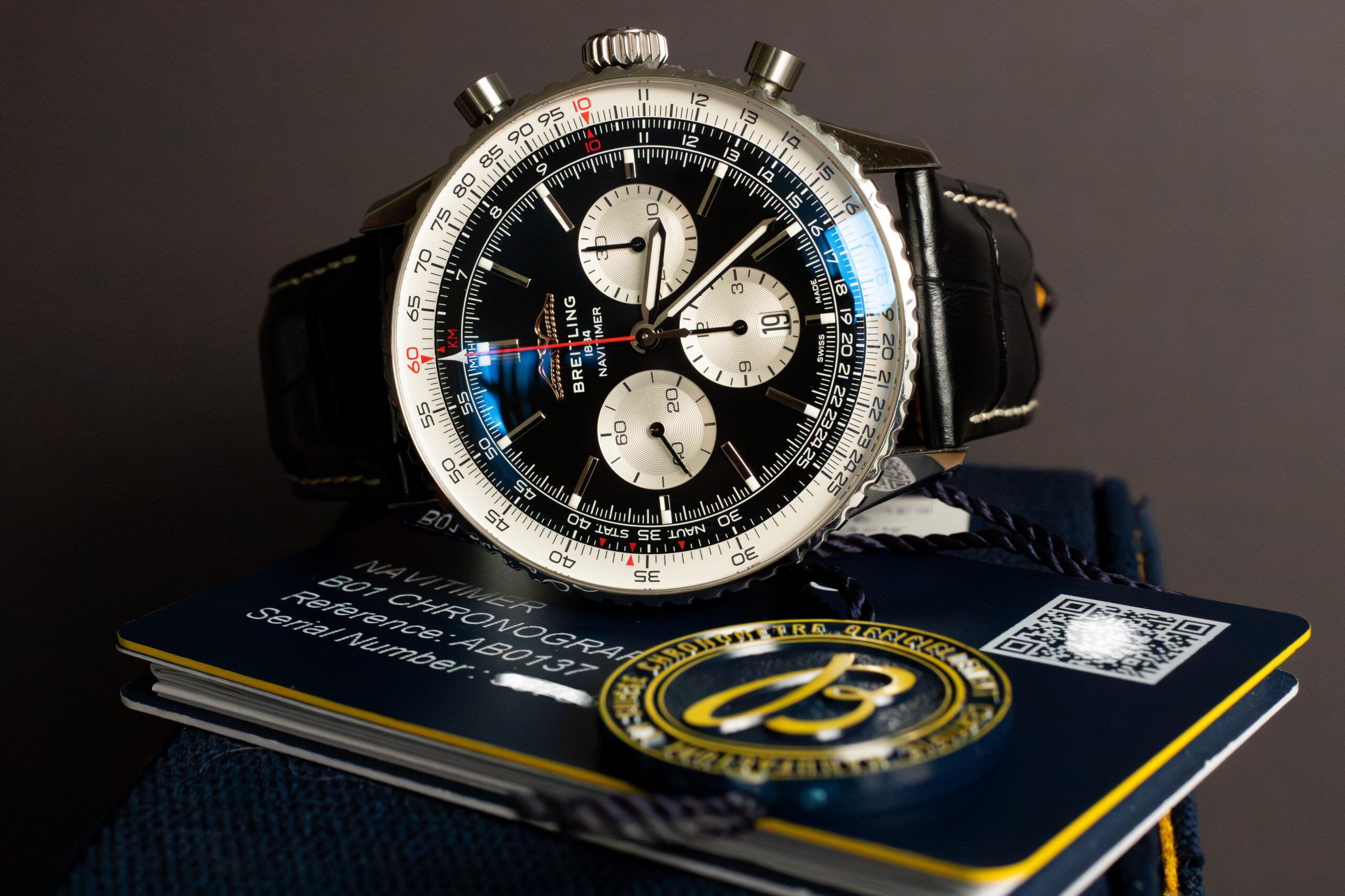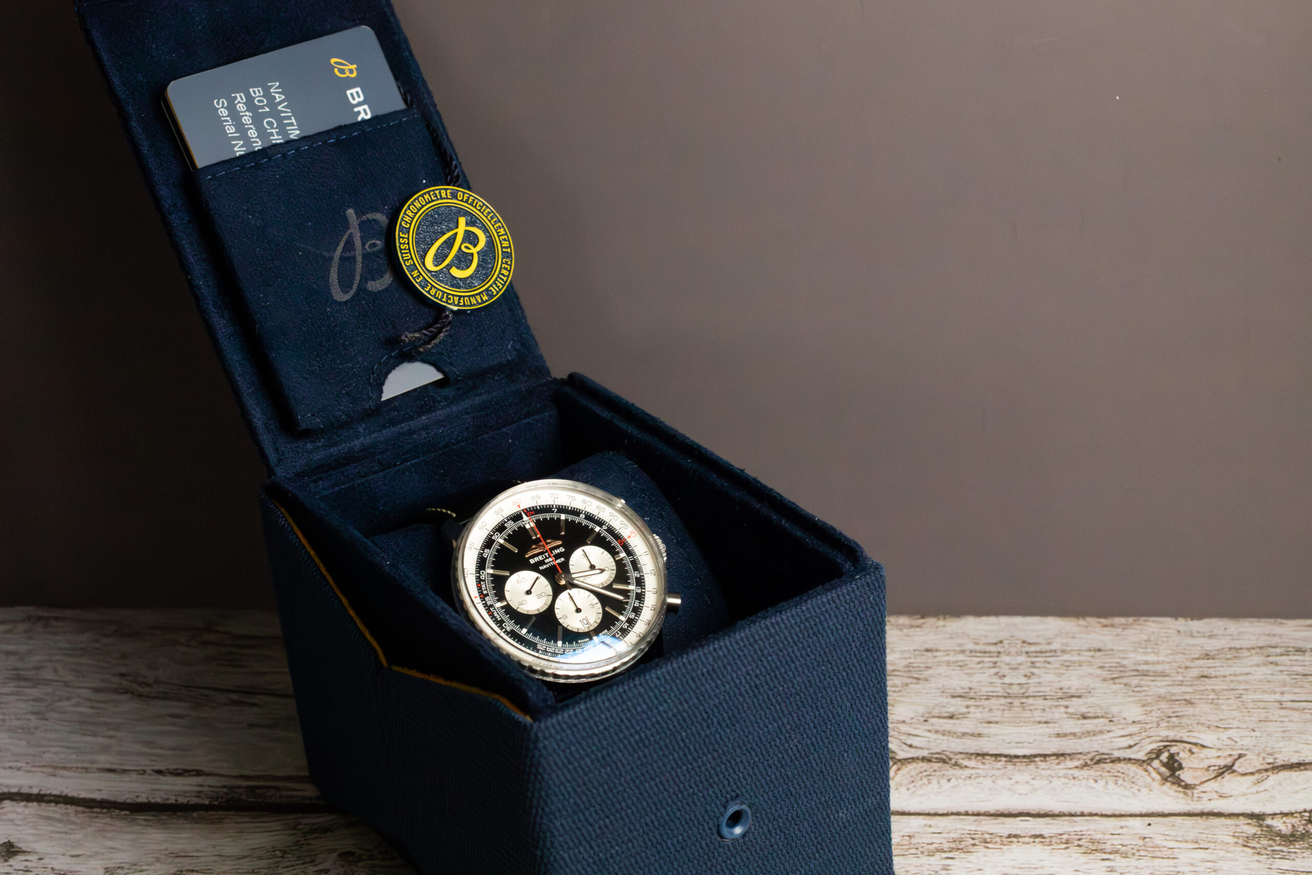 This Navitimer B01 suits aviation professionals and enthusiasts seeking authentic pilot’s chronograph with genuine slide rule functionality and proven aviation heritage. The substantial 46mm sizing and comprehensive timing scales provide professional capability whilst the iconic design and AOPA connection honour Breitling’s distinguished aviation legacy.