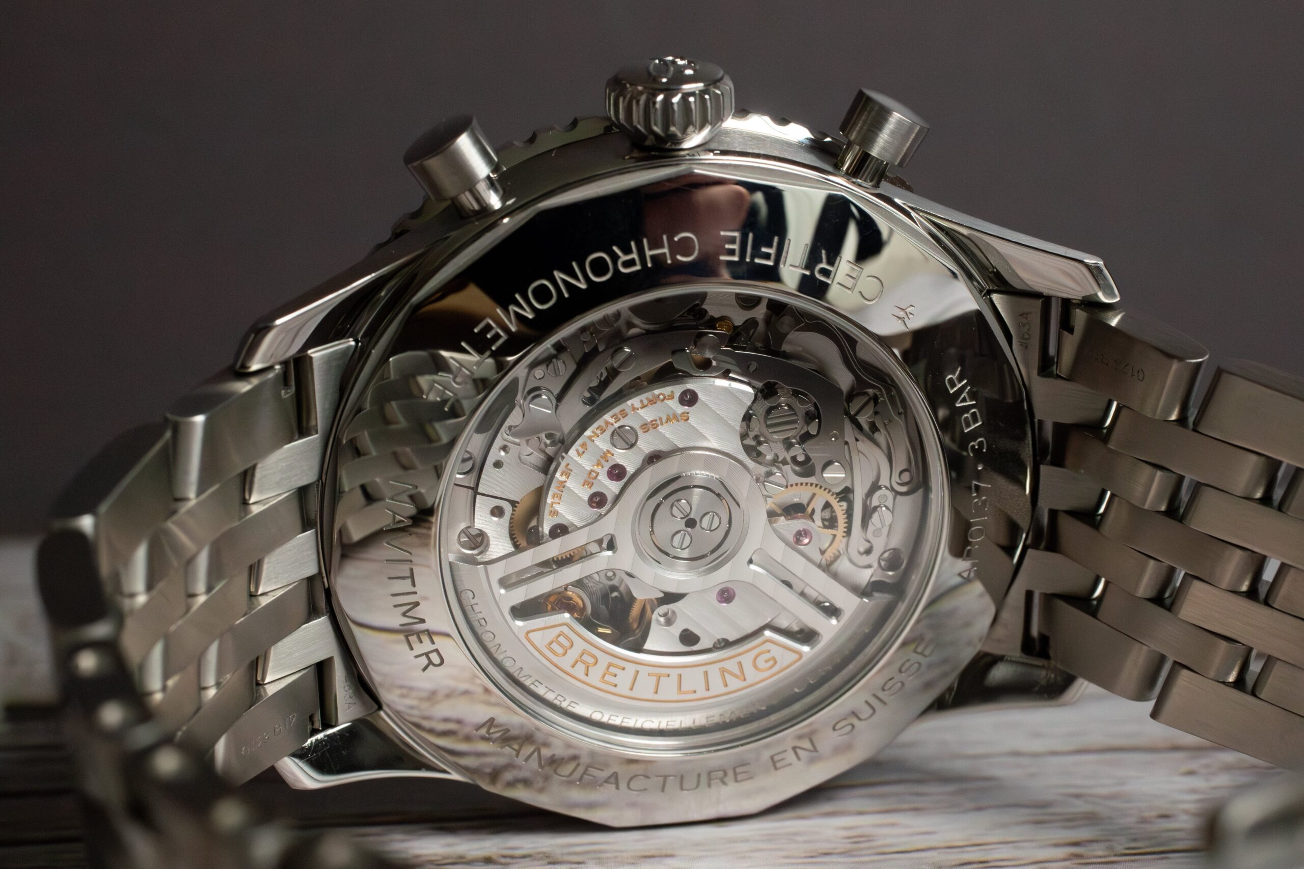 The Manufacture Calibre B01 delivers COSC chronometer certification with 70-hour power reserve, tested to simulate 16 years of wear including 60,000 shocks at 500G. This isn’t marketing hyperbole, the movement undergoes comprehensive testing protocols because equipment failure in aviation has serious consequences. The column wheel chronograph provides precise operation essential for professional flight timing.