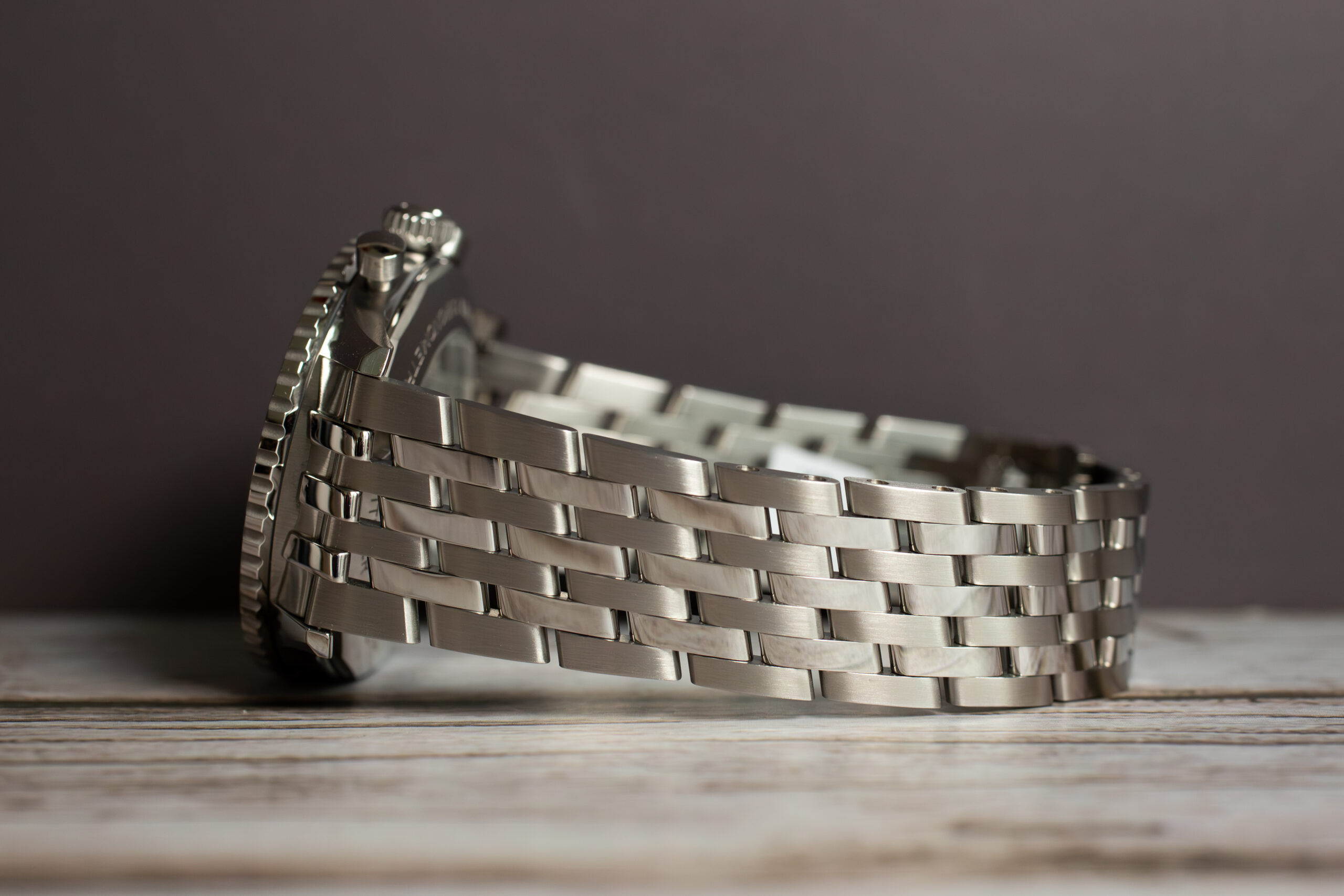 At 46mm, this commands serious wrist presence but the sizing serves a purpose. Professional cockpit use demands high legibility, and the substantial case accommodates the complex chronograph movement while providing sufficient dial space for clear slide rule operation. The black dial offers sophisticated appearance with the high contrast visibility essential for flight operations.