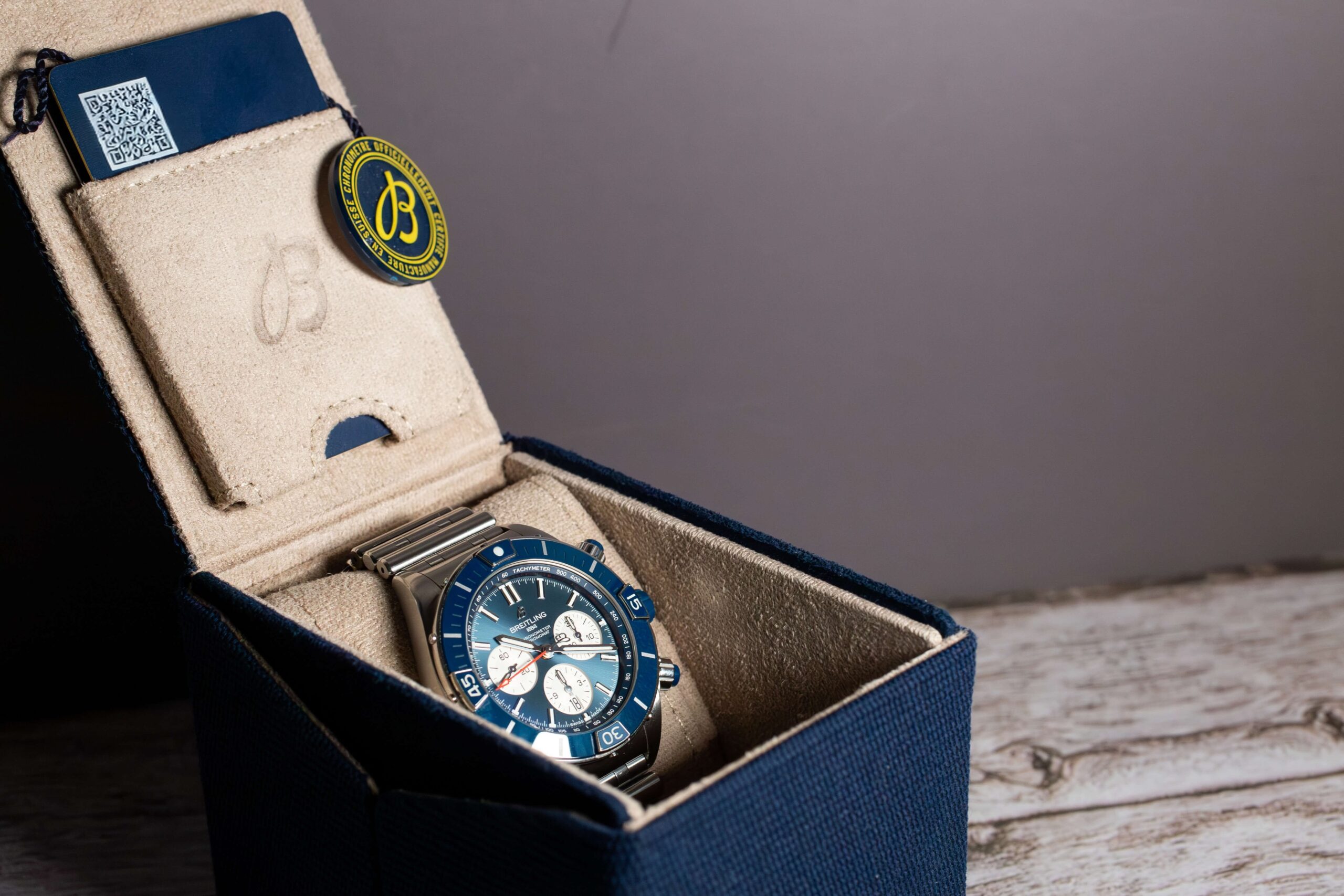This Super Chronomat suits buyers who want authentic aviation chronograph heritage with modern materials innovation. The Frecce Tricolori connection validates genuine pilot requirements rather than aviation styling, whilst the ceramic technology and Manufacture movement provide contemporary performance. It’s built for serious aviation use whilst offering the sophisticated finishing expected from luxury Swiss chronographs.