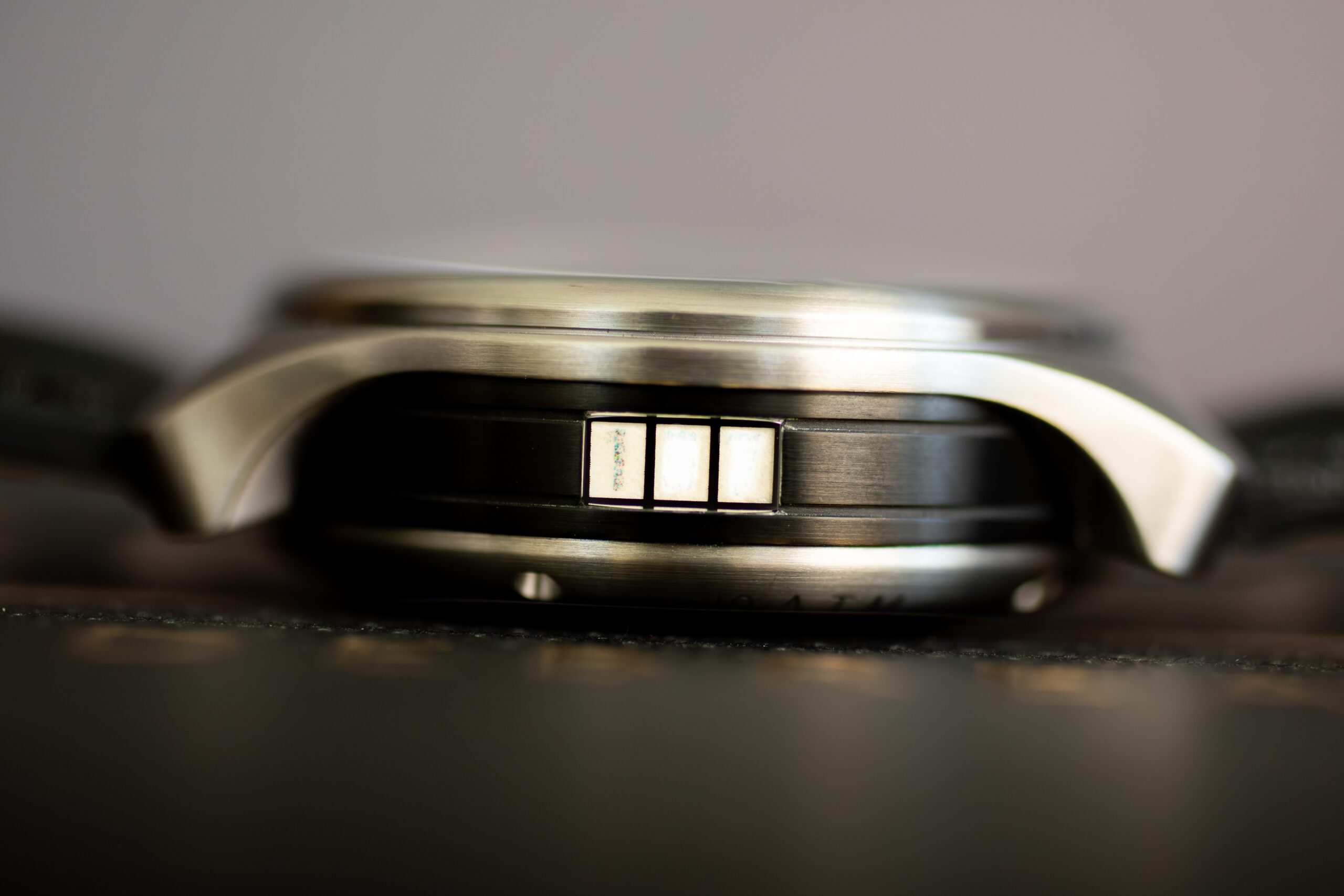 The domed sapphire crystal with anti-reflective coating ensures optimal clarity whilst the unique caseback incorporating original Enigma machine material creates extraordinary historical significance. The 100m water resistance provides practical daily wear capability.