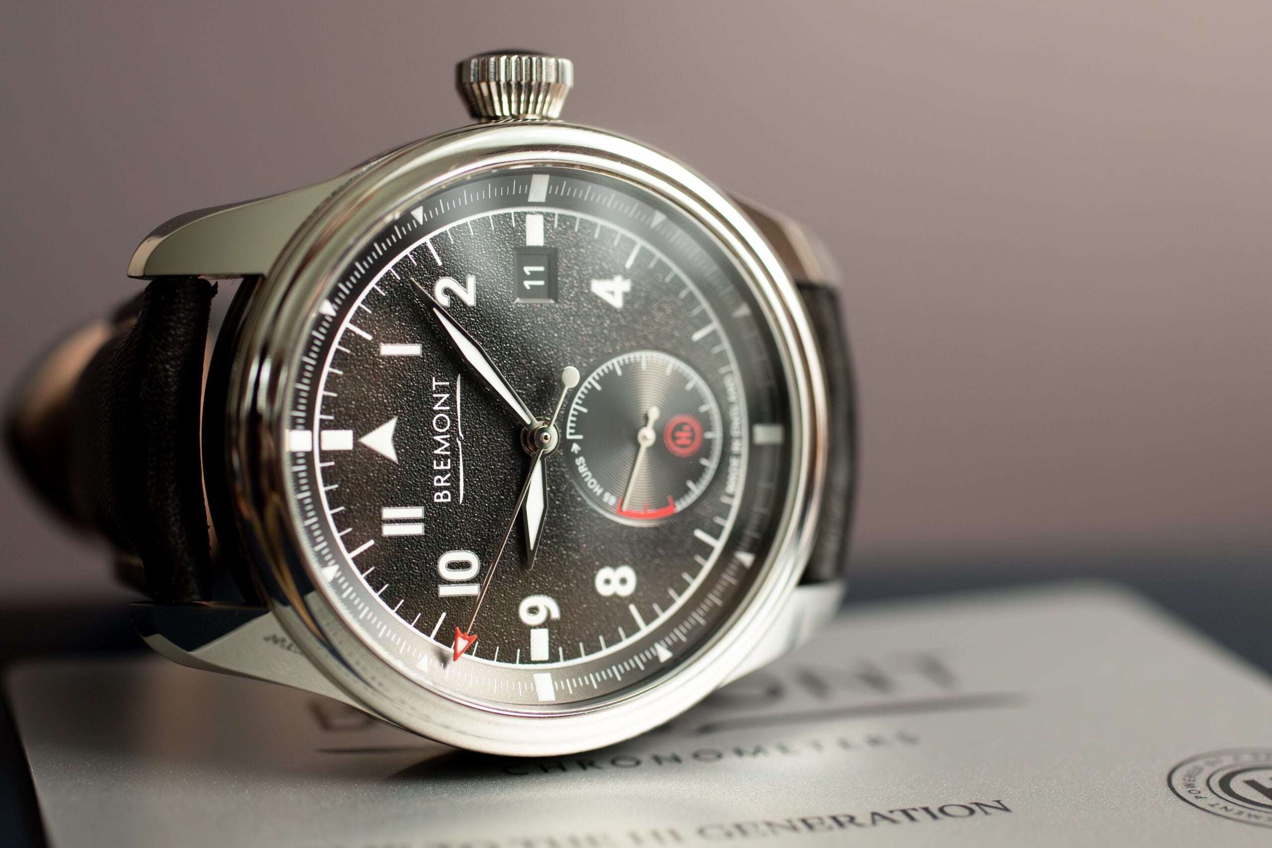 The Bremont Fury H1 Generation 40mm (Ref. FURY-BK-SS-R-S) honours aviation heritage through classic three-hand pilot’s watch design that references legendary aircraft from the 1930s Hawker Fury to the 1940s WW2 Hawker Sea Fury. The polished stainless steel Trip-Tick construction provides exceptional shock resistance whilst the ENG365 movement with 65-hour power reserve demonstrates Bremont’s commitment to precision timing excellence.