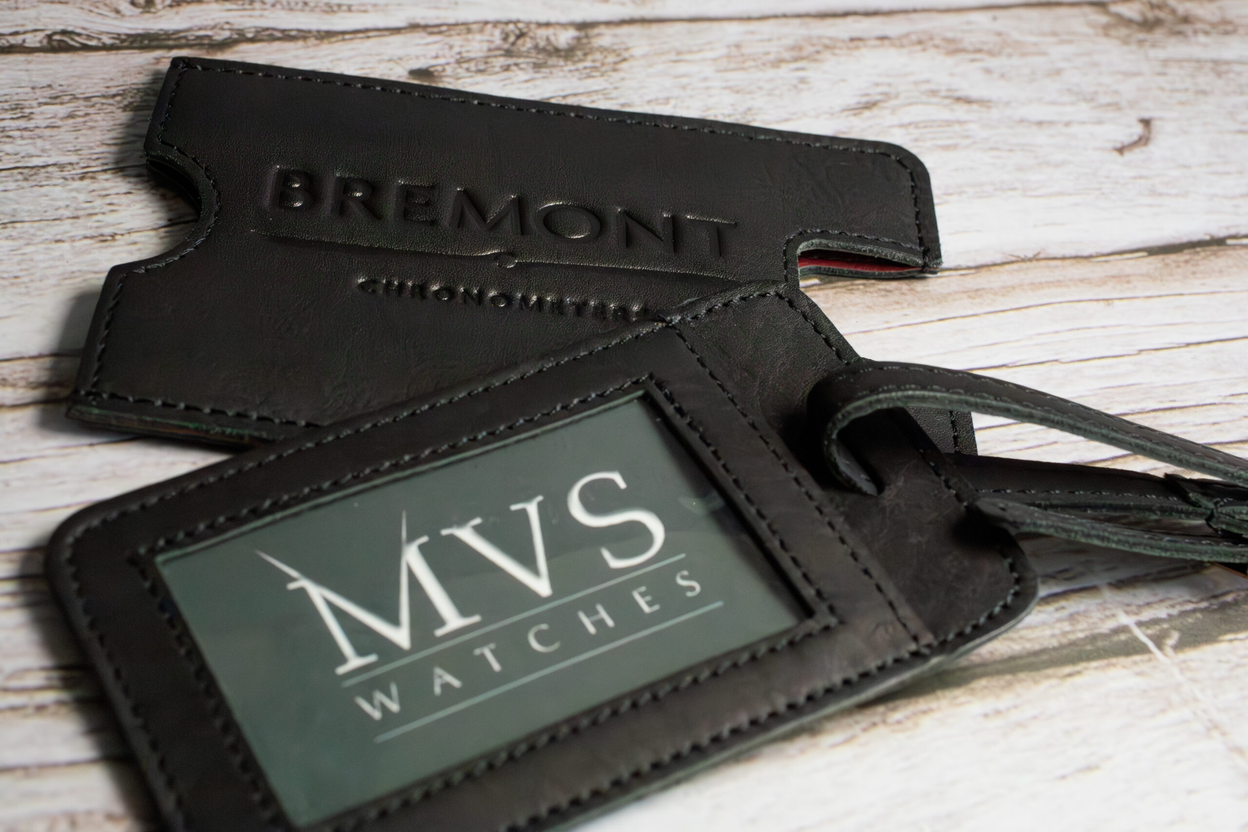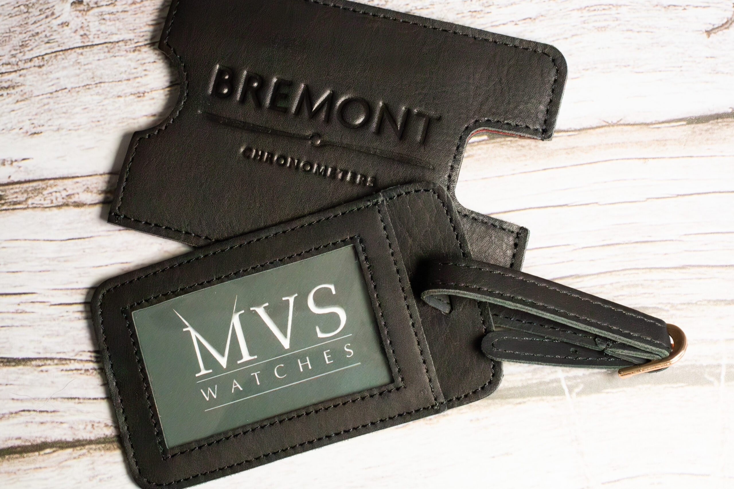 At compact proportions with premium grain leather construction, this provides durable luggage identification through embossed logo detailing that maintains legibility through demanding travel conditions. The clear ID window enables secure personal information display whilst the included Bremont identification card creates professional presentation appropriate for aviation and business travel.