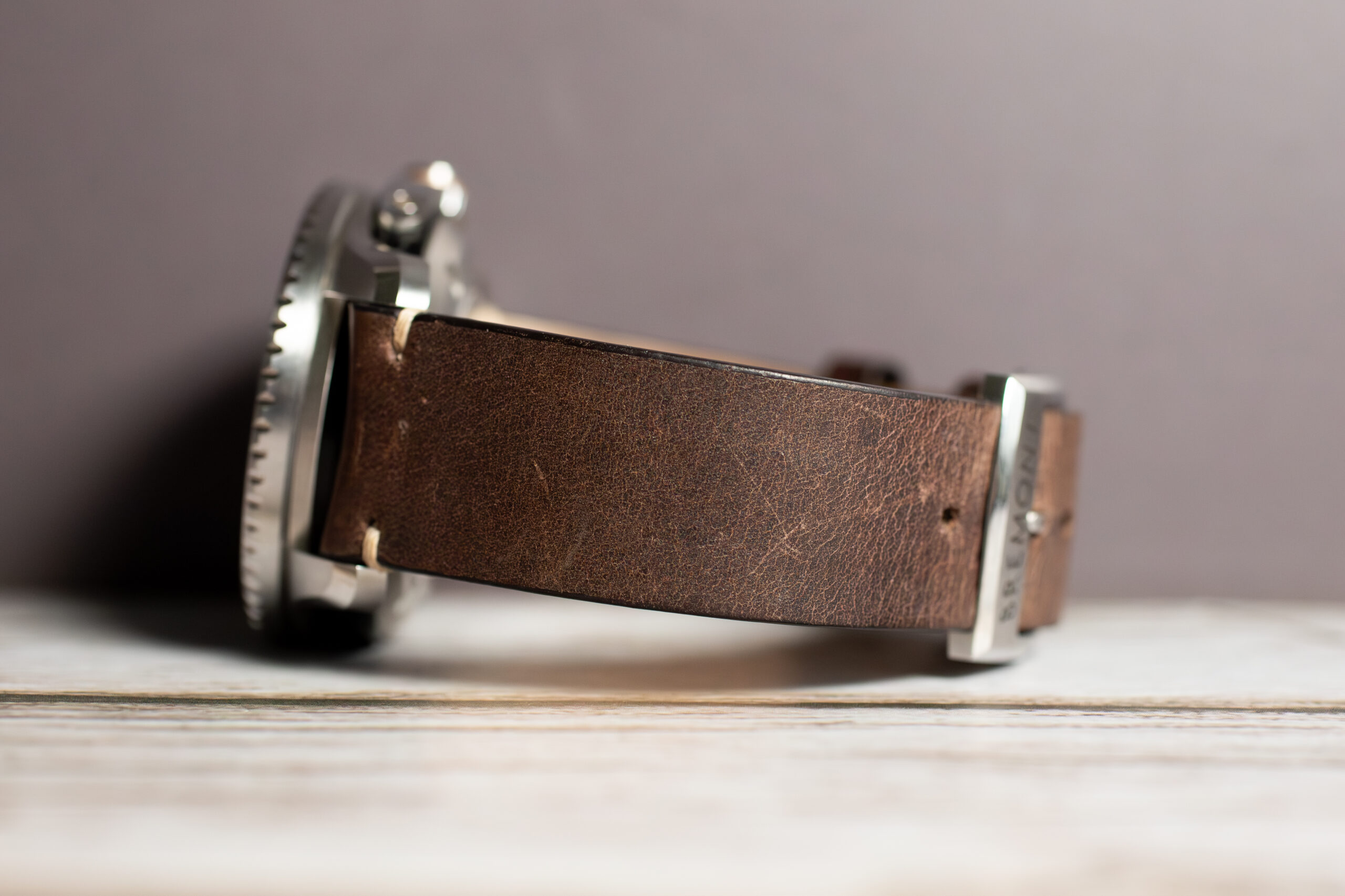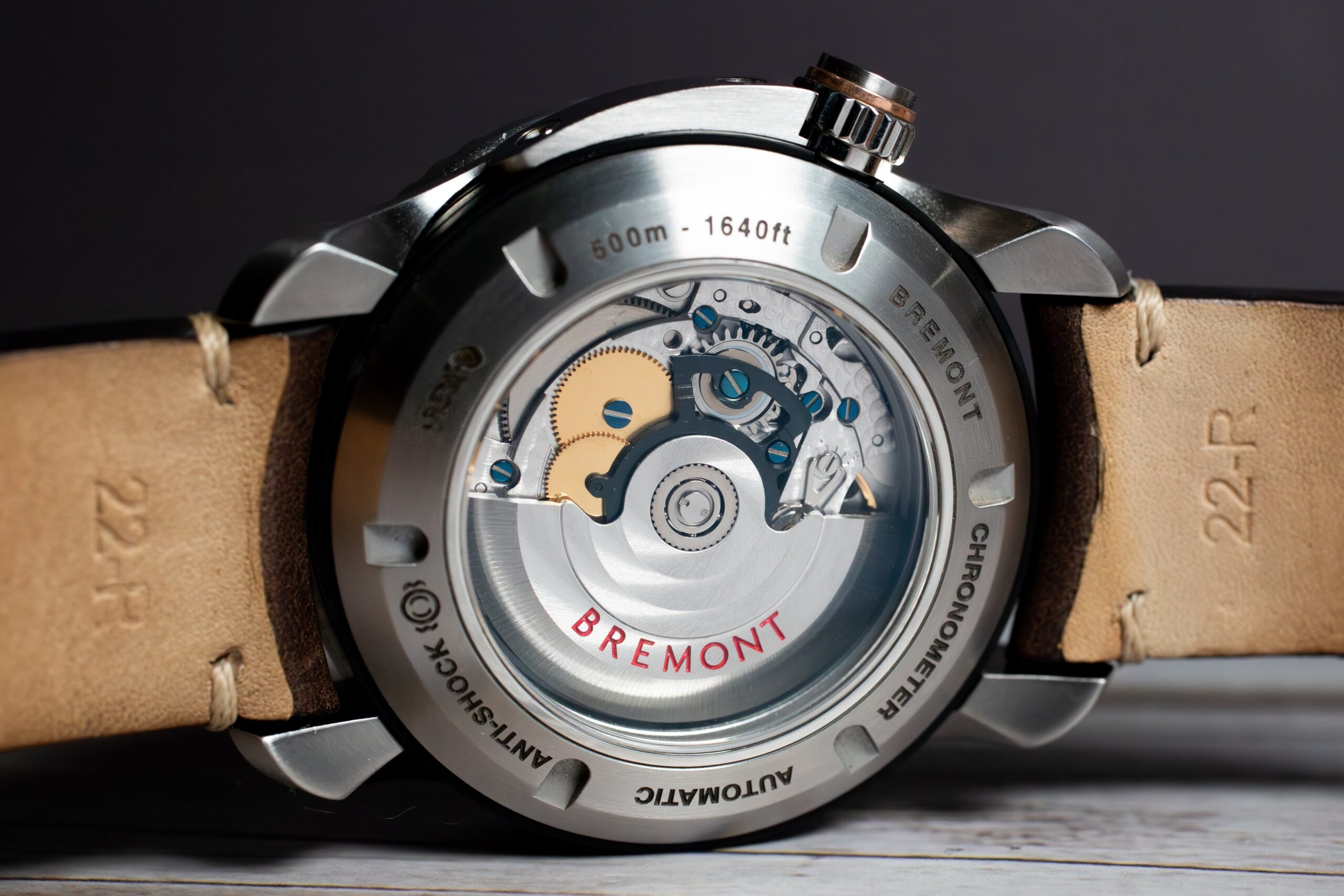 The modified Calibre BE-36AE delivers chronometer certification with 38-hour power reserve and Bremont’s distinctive skeletonised rotor design. The Anachron balance spring and Nivaflex mainspring provide enhanced reliability whilst the 25-jewel construction with Glucydur balance ensures long-term accuracy essential for professional diving applications.
