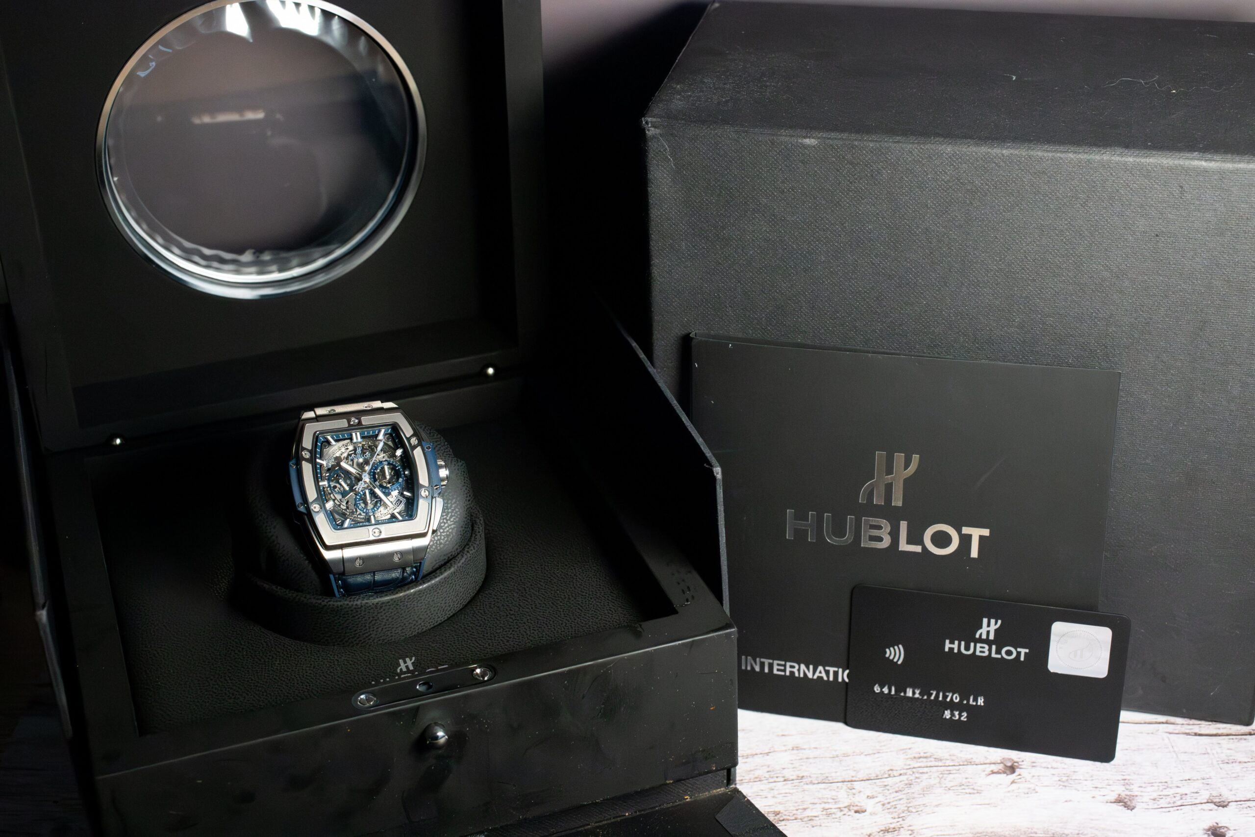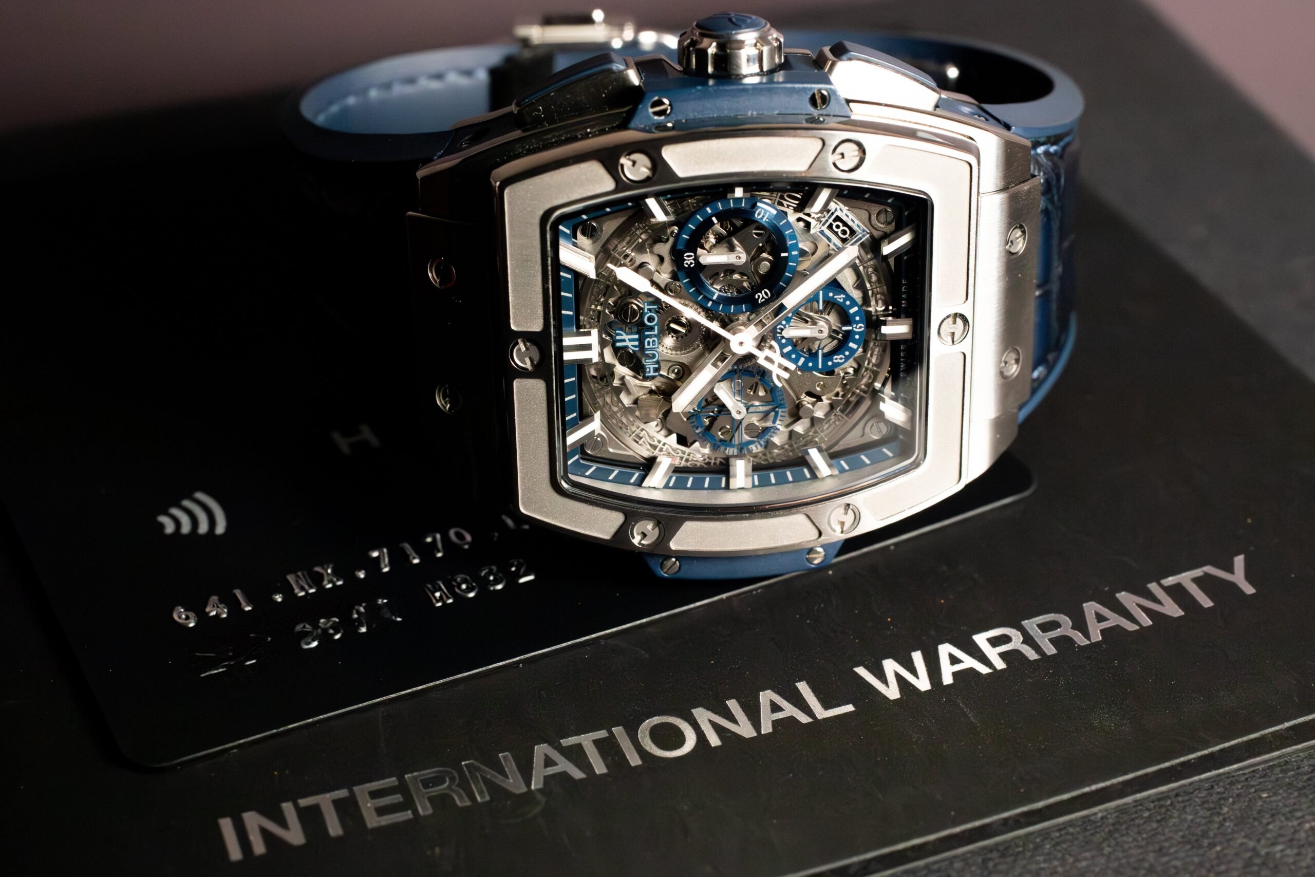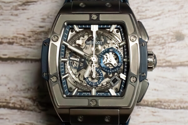 This Spirit of Big Bang Titanium Blue suits buyers seeking distinctive chronograph design that challenges conventional round case conventions. The sapphire dial transparency and tonneau case create unique character within luxury sports chronographs, making this ideal for those who appreciate Hublot’s innovative approach to traditional complications.