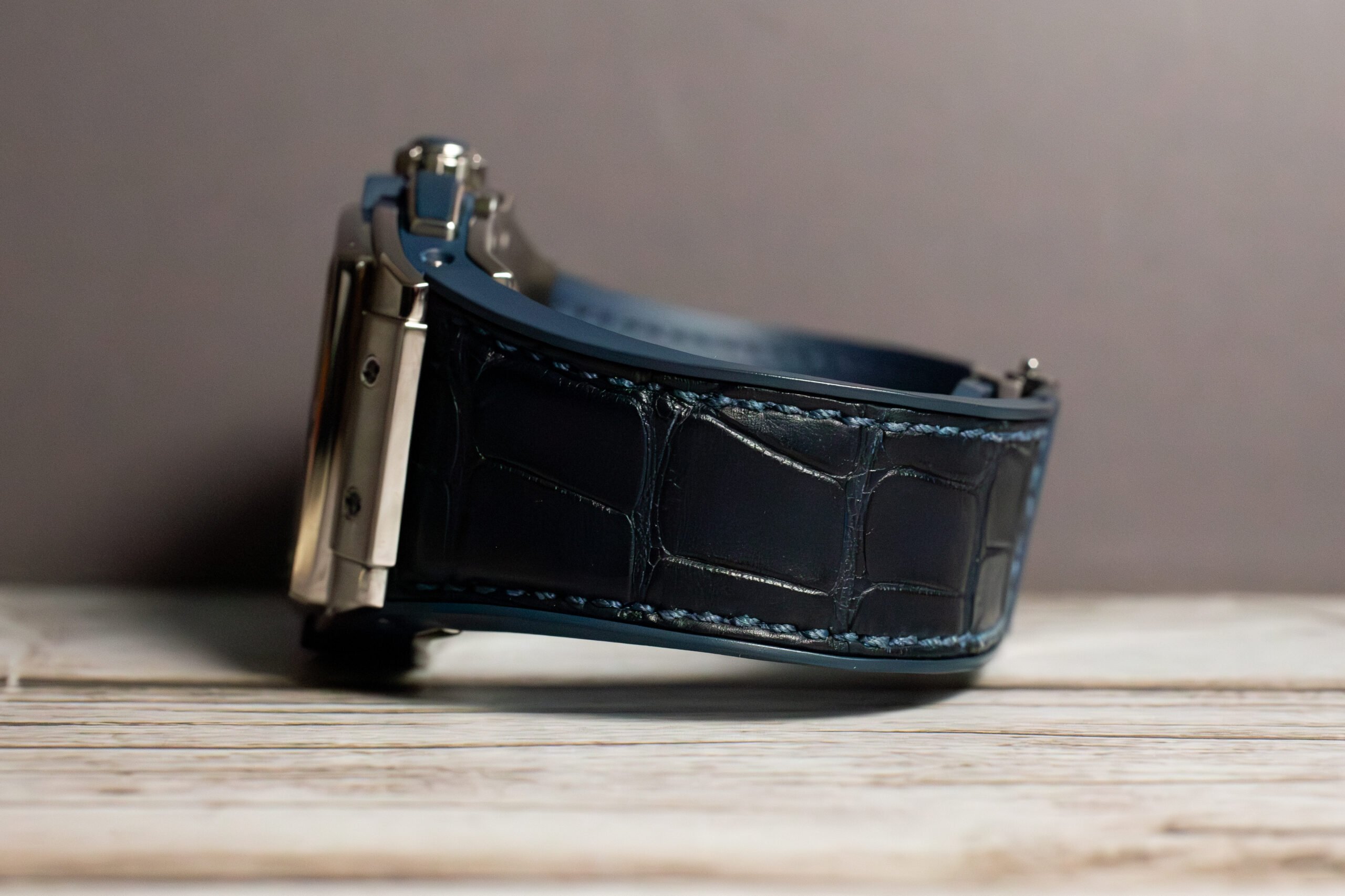 At 42mm with satin-finished titanium case, this provides substantial presence whilst remaining lightweight through Grade 5 titanium construction that offers superior strength-to-weight ratio. The iconic H-shaped titanium screws and microblasted bezel finishing create sophisticated visual depth, whilst the tonneau shape distinguishes this from conventional round chronographs.