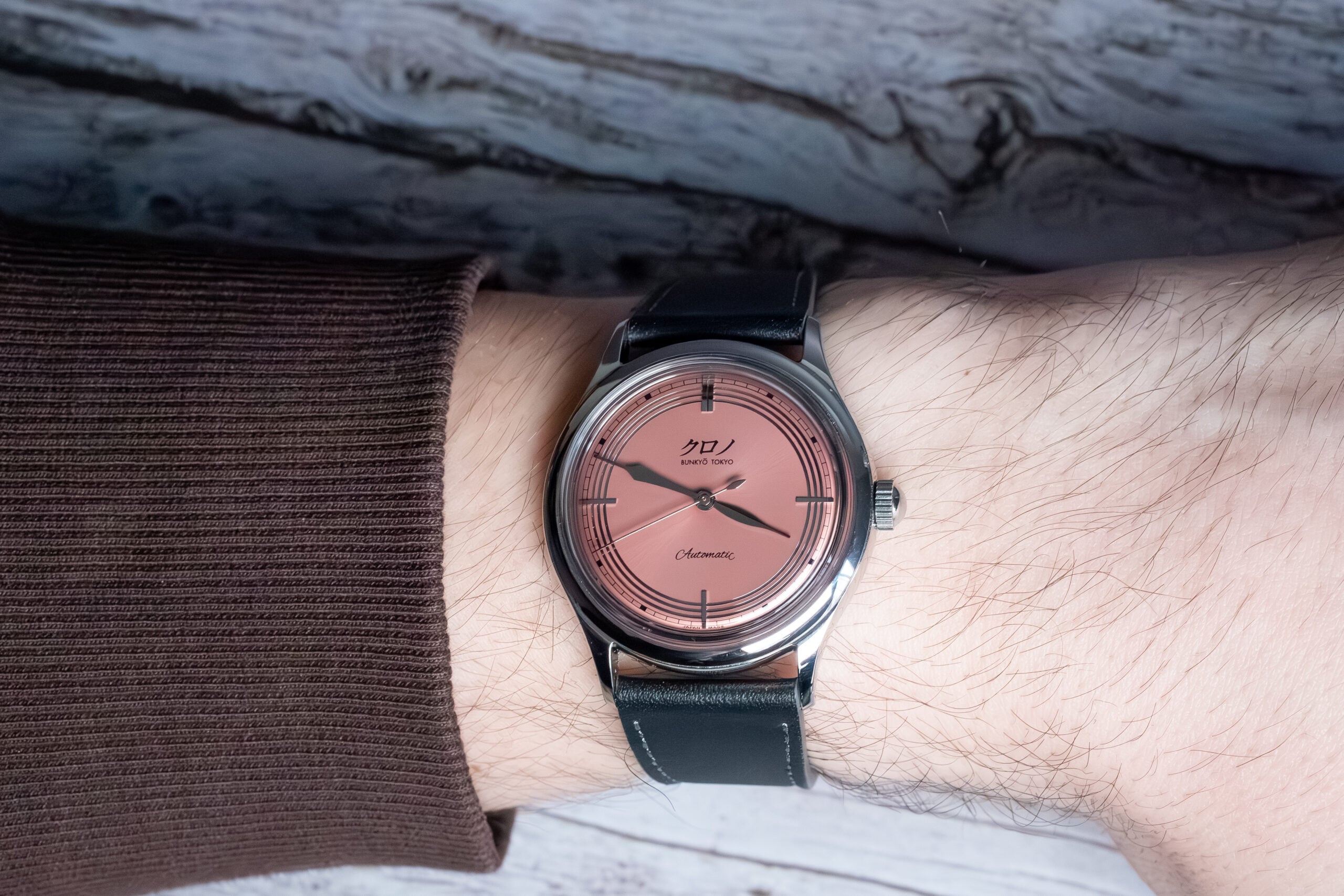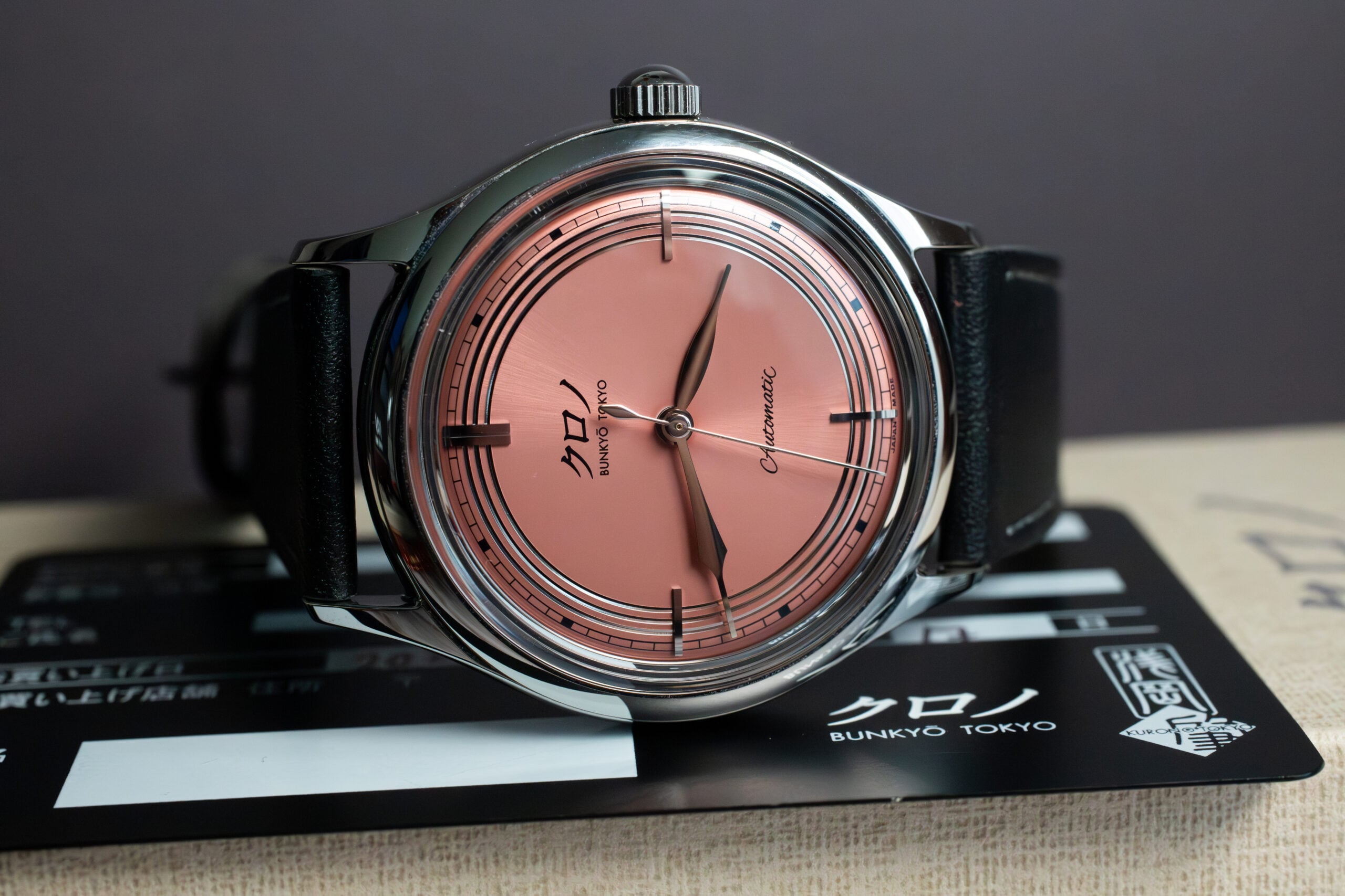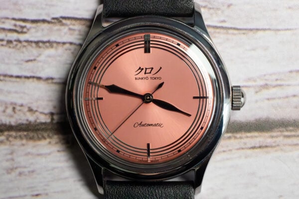 The Kurono Tokyo 2021 Anniversary Toki Salmon Dial 37mm celebrates Kurono’s second anniversary through distinctive metallic coral radial sunburst dial inspired by the Japanese crested ibis (朱鷺), an auspicious bird symbolising happiness and good fortune. Master Hajime Asaoka’s meticulous colour development process created unique shade that differentiates from typical Western salmon dials, ranging from crimson to vermillion with purple undertones depending on lighting conditions.