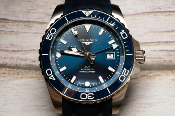 The Longines Hydroconquest GMT 43mm Blue Dial (Ref. L3.890.4.96.9) combines legitimate diving capability with proper GMT functionality for travellers who need both underwater performance and dual-time zones. The 300m water resistance places this in professional diving territory whilst the 24-hour GMT hand enables tracking of home time during international diving expeditions.