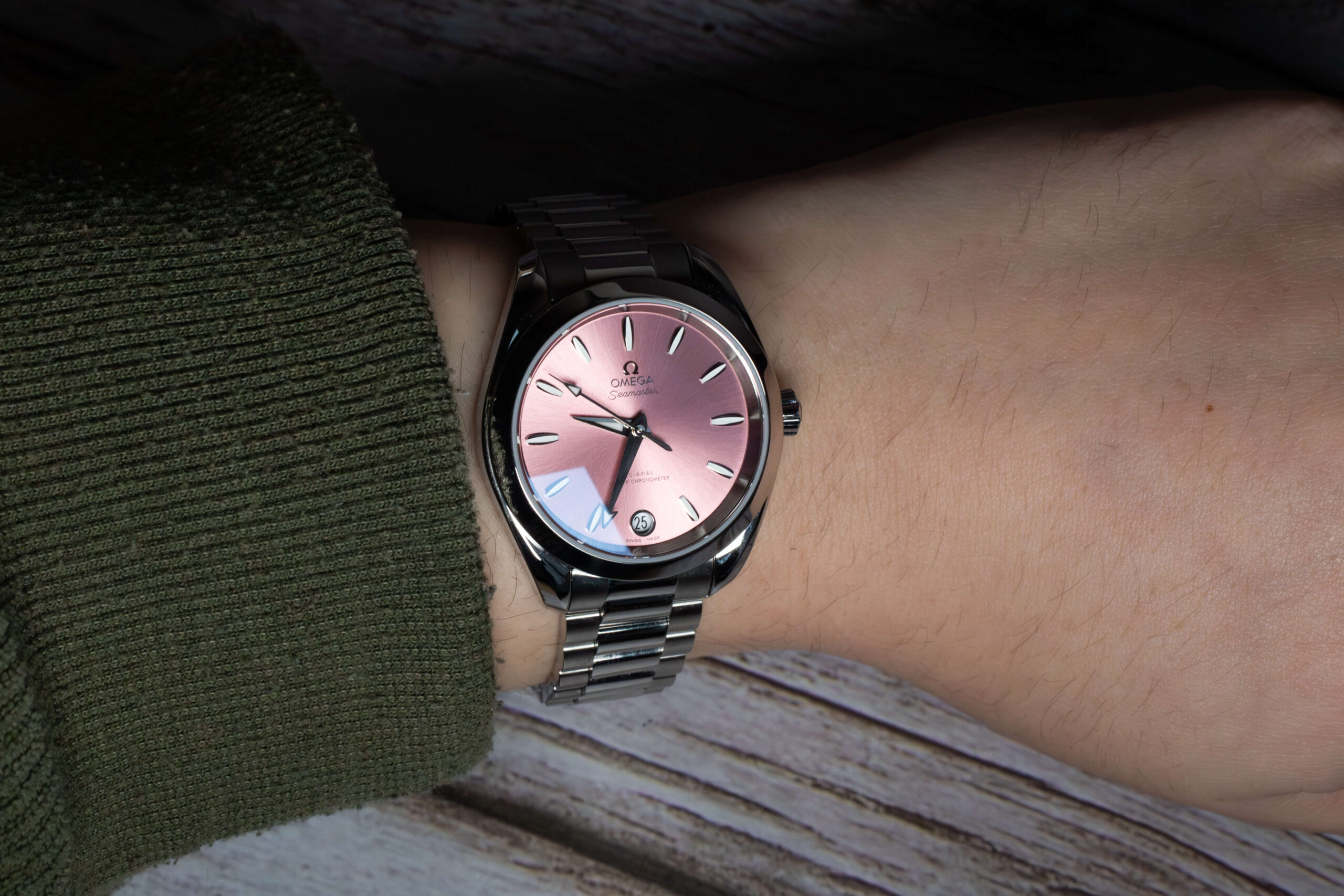 This Aqua Terra Shell Pink suits buyers who want OMEGA’s technical excellence in refined sizing with distinctive colour expression. The Shades collection demonstrates that luxury sports watches can embrace sophisticated colour whilst maintaining horological substance. It’s ideal for those seeking precision Swiss watchmaking in elegant proportions with genuine precious metal details and contemporary aesthetic appeal that stands apart from traditional dress watch conventions.