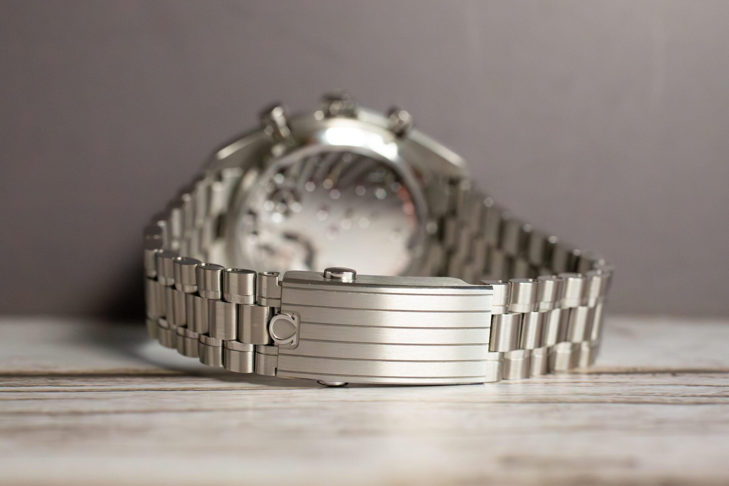 The tri-compax layout provides small seconds at 9 o’clock with 60-minute and 12-hour recorders at 3 o’clock whilst the central chronograph seconds enables precise timing. The stainless steel bracelet with OMEGA’s patented comfort release system ensures secure attachment.