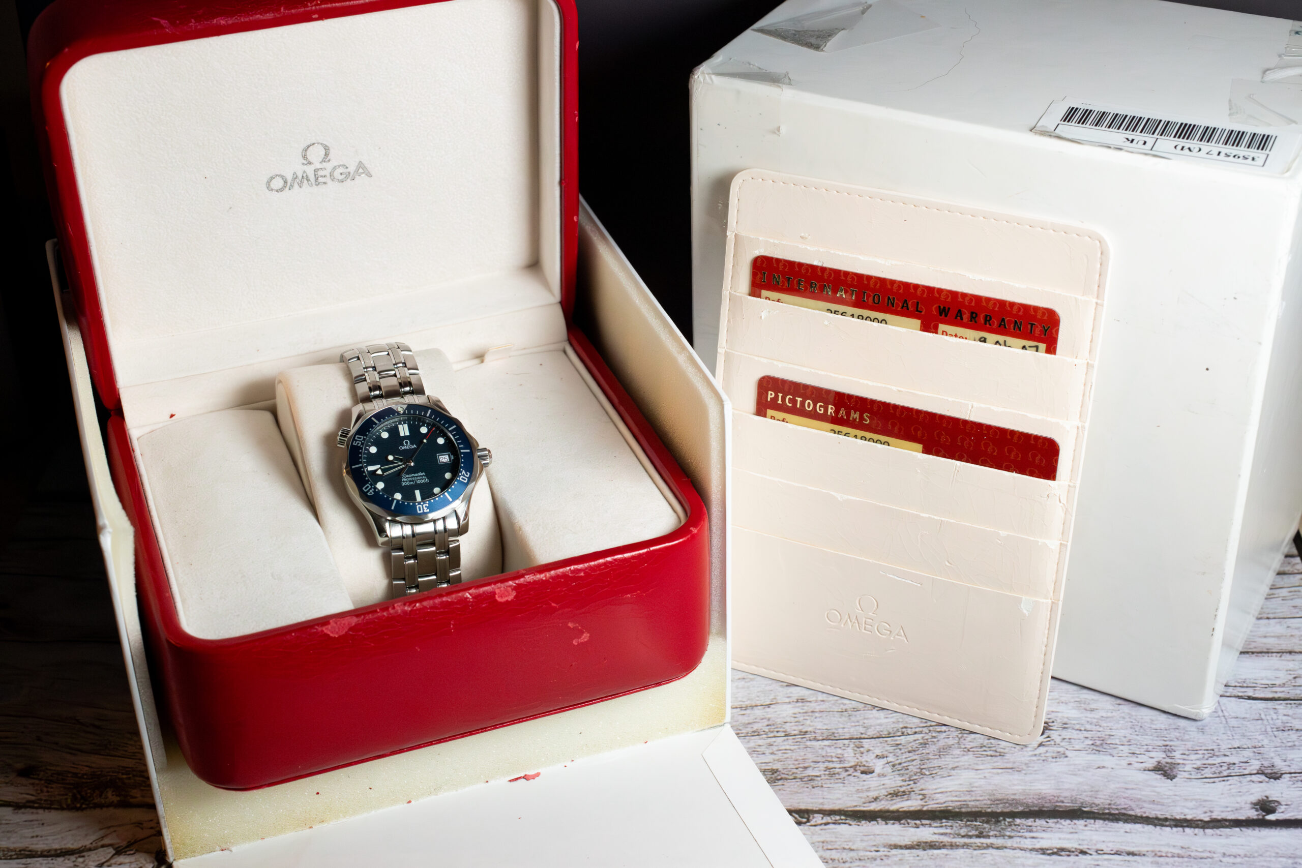 The 30 bar water resistance validates serious diving capability whilst the classic blue wave-pattern dial maintains authentic Seamaster character. The 2007 production with original box and papers provides complete provenance for this mid-size interpretation.