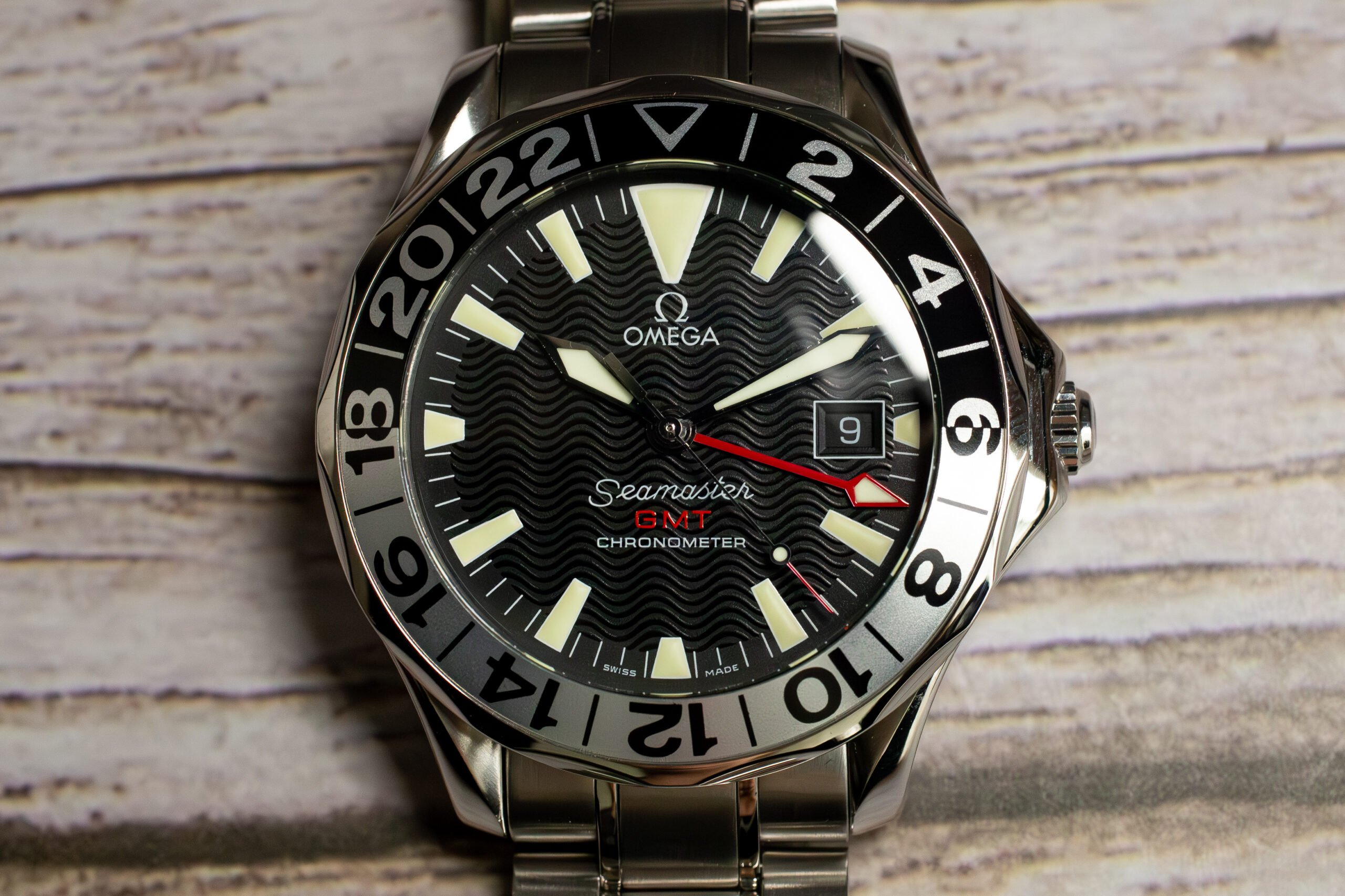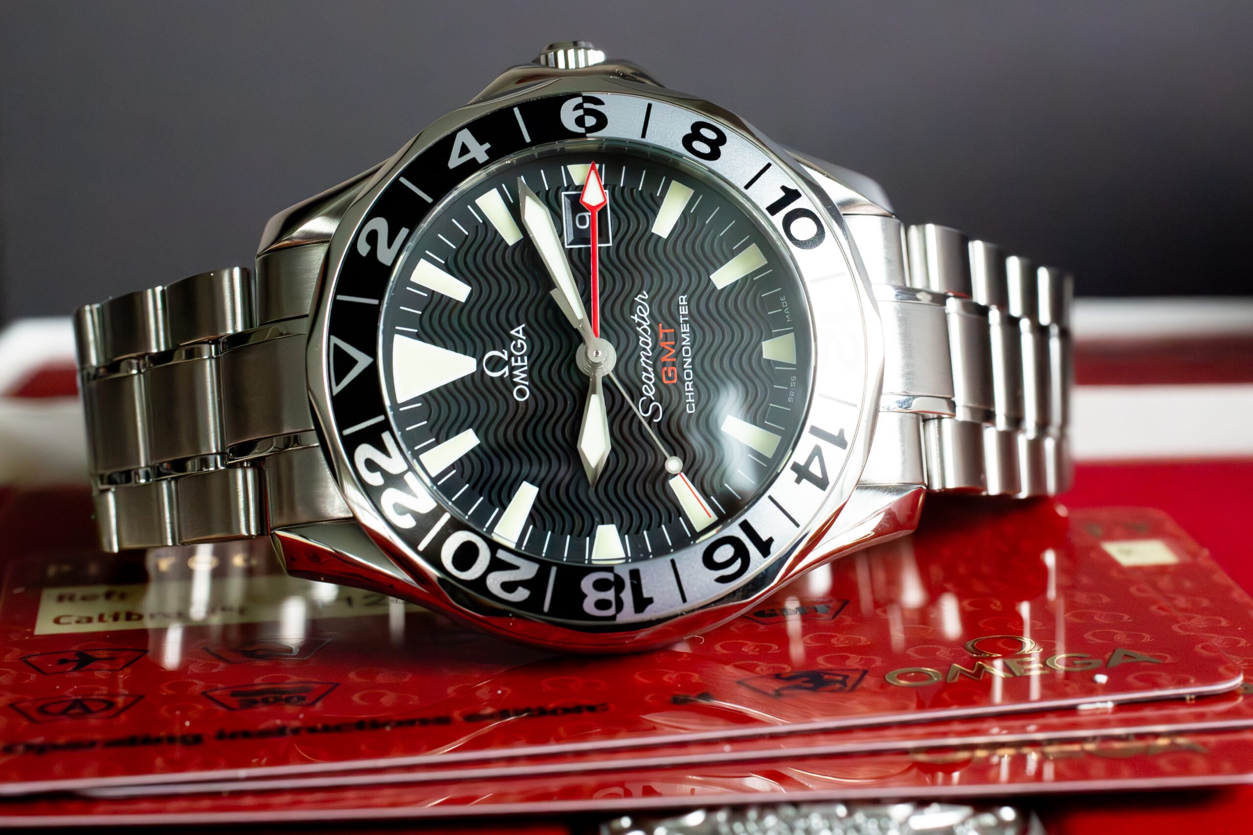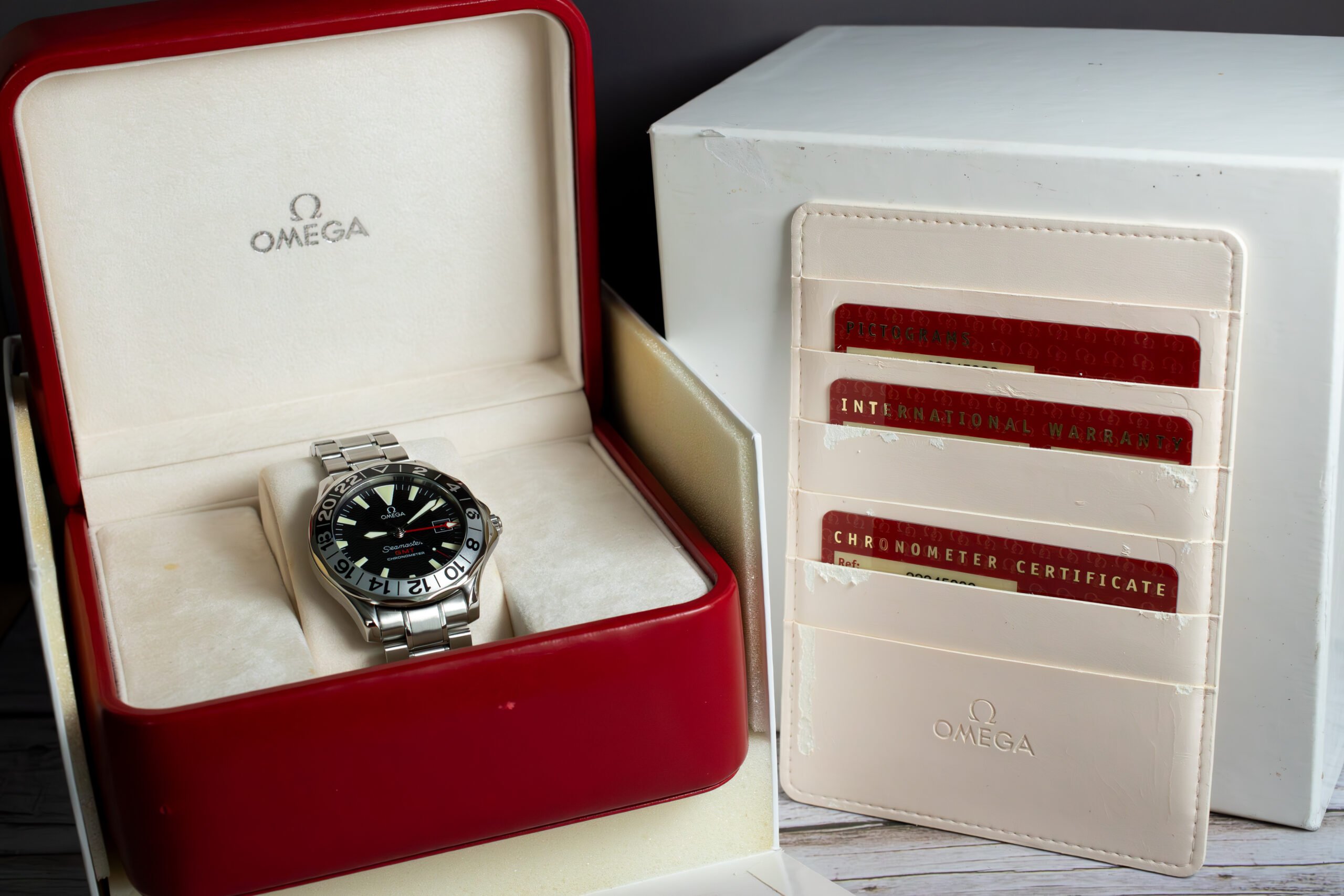 This Seamaster GMT 50th Anniversary suits collectors seeking authentic OMEGA heritage with practical dual time zone capability and proven diving watch reliability. The 1998 commemorative production and GMT functionality provide distinctive character whilst the substantial construction and professional water resistance ensure capability for both diving and international travel applications.