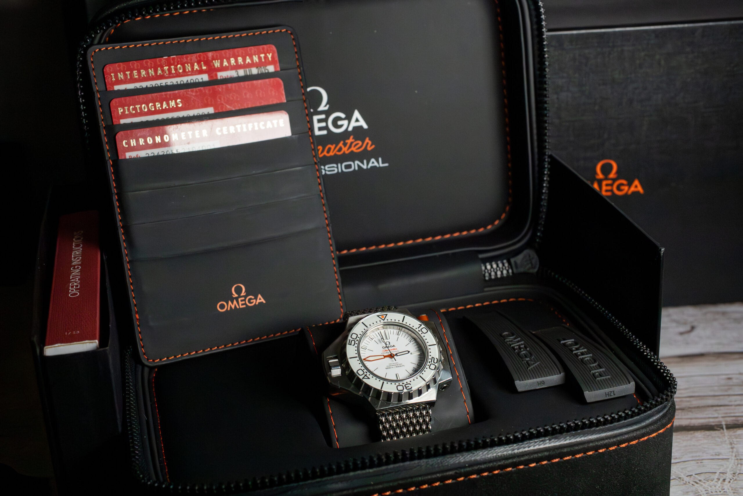 This 55 x 48mm stainless steel extreme diving watch features the proven Co-Axial Calibre 8500 movement, delivering exceptional reliability with 60-hour power reserve that ensures consistent performance throughout extended saturation diving operations whilst the distinctive white dial with bi-directional rotating bezel creates sophisticated visual appeal essential for professional deep diving timing applications. The Seamaster Ploprof demonstrates OMEGA’s unwavering commitment to extreme diving excellence, creating timepieces that serve genuine commercial diving requirements whilst embracing contemporary luxury diving expectations through Swiss manufacturing excellence and deep diving innovation that celebrates both professional heritage and modern saturation diving advancement that continues to serve commercial divers and extreme diving enthusiasts worldwide.