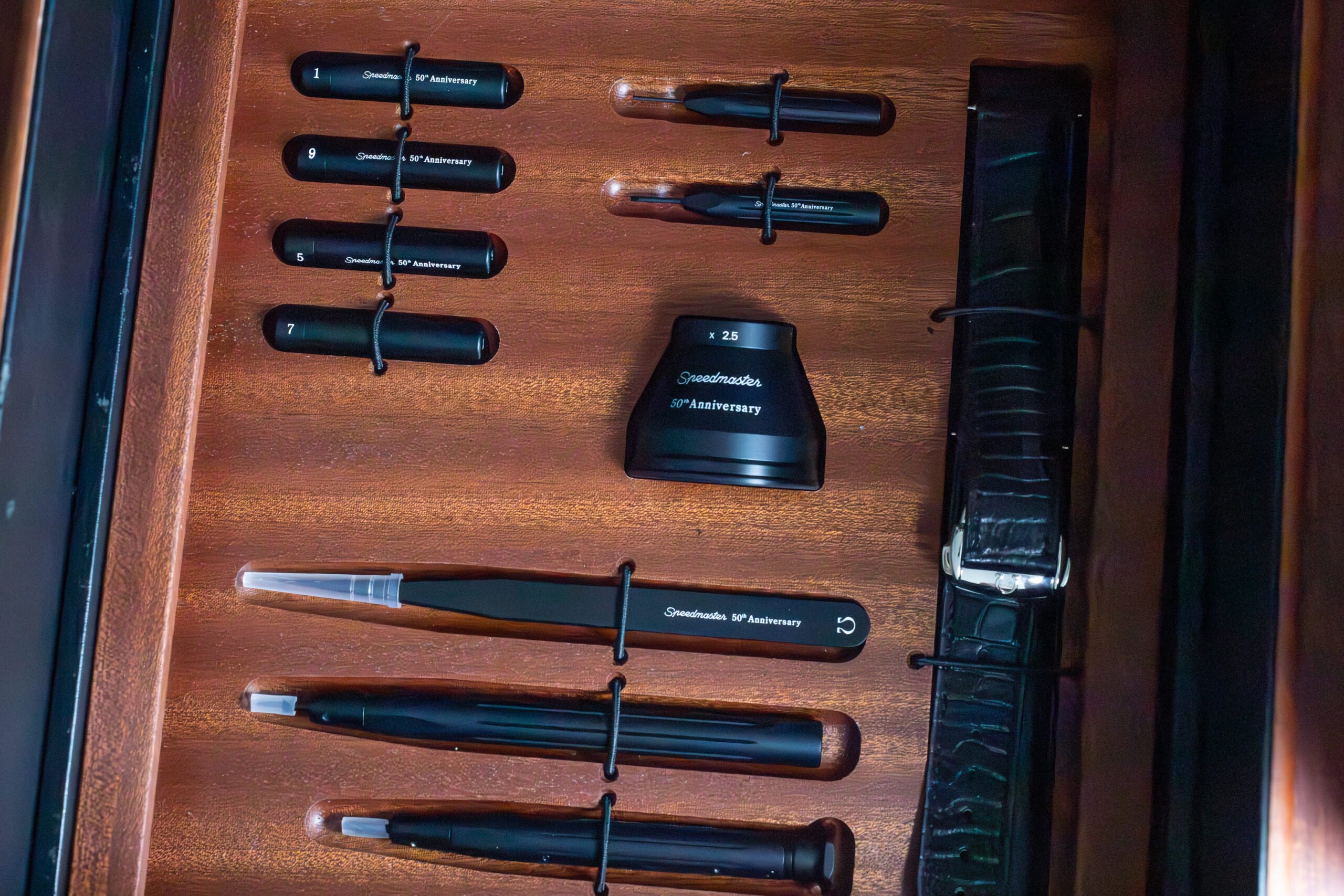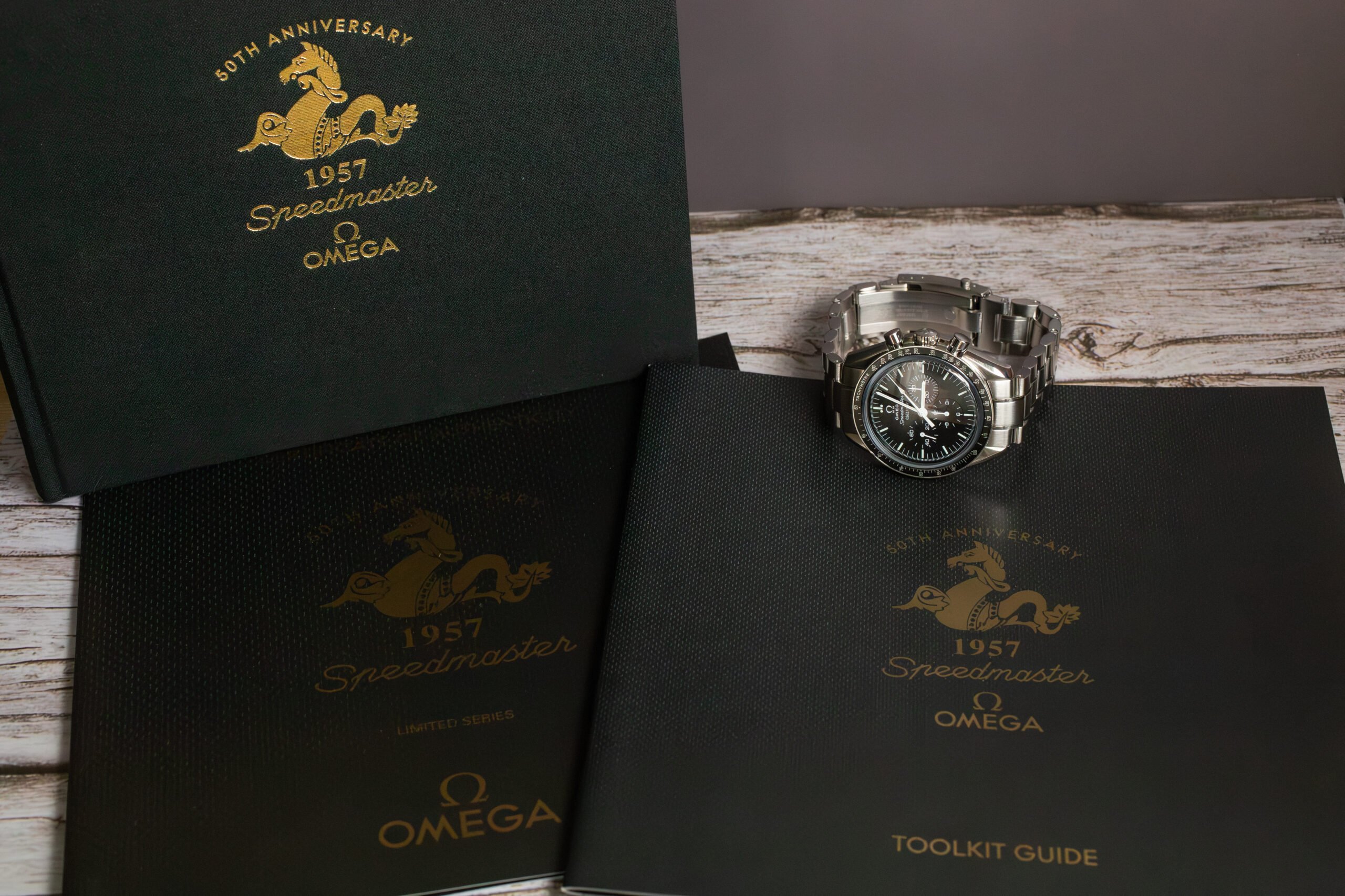 This Speedmaster 1957 50th Anniversary suits serious collectors seeking authentic lunar mission heritage with commemorative significance and advanced movement technology. The limited 1,957 piece production and comprehensive tool set provide exceptional value whilst the Co-Axial movement represents technological advancement beyond traditional Moonwatch construction.