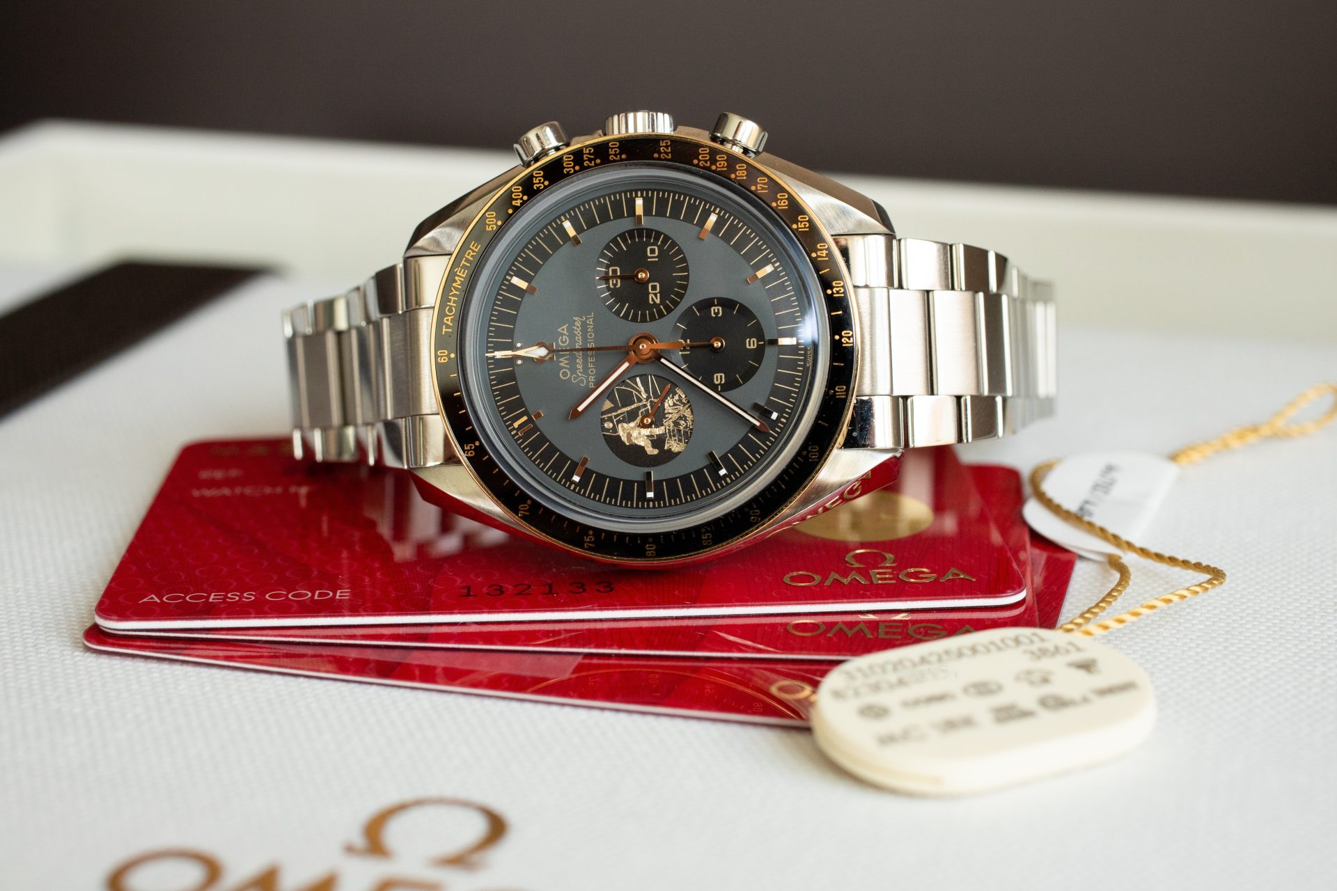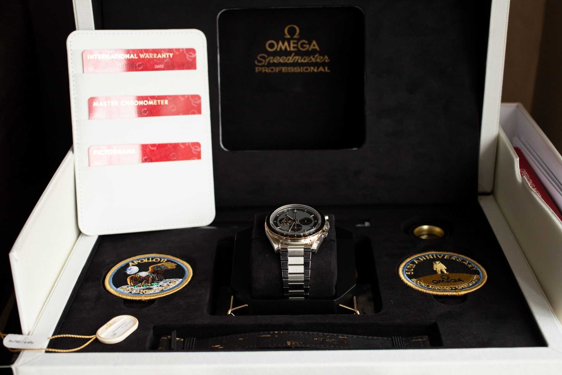 With only 6,969 pieces produced worldwide (a number chosen to reference the year of the moon landing), this 50th Anniversary Limited Edition 310.20.42.50.01.001 represents a relatively small production run for such a significant commemorative model. The combination of its connection to one of humanity’s greatest achievements, the milestone anniversary it celebrates, the technical advancements it incorporates, and the thoughtful design details throughout suggest strong long-term collectability. Limited editions of iconic models like the Speedmaster typically attract particular interest from collectors, especially those marking important anniversaries of historic events. Additionally, the unworn condition of this example, complete with its original packaging and warranty, further enhances its desirability for serious collectors seeking pristine examples of historically significant timepieces.