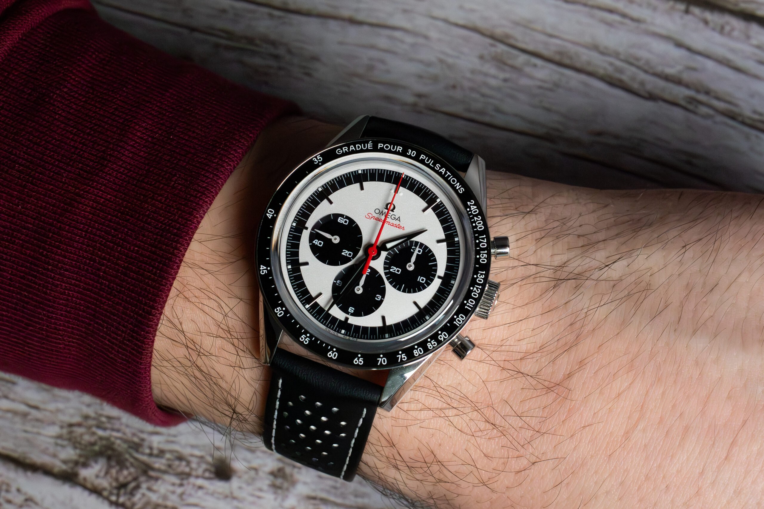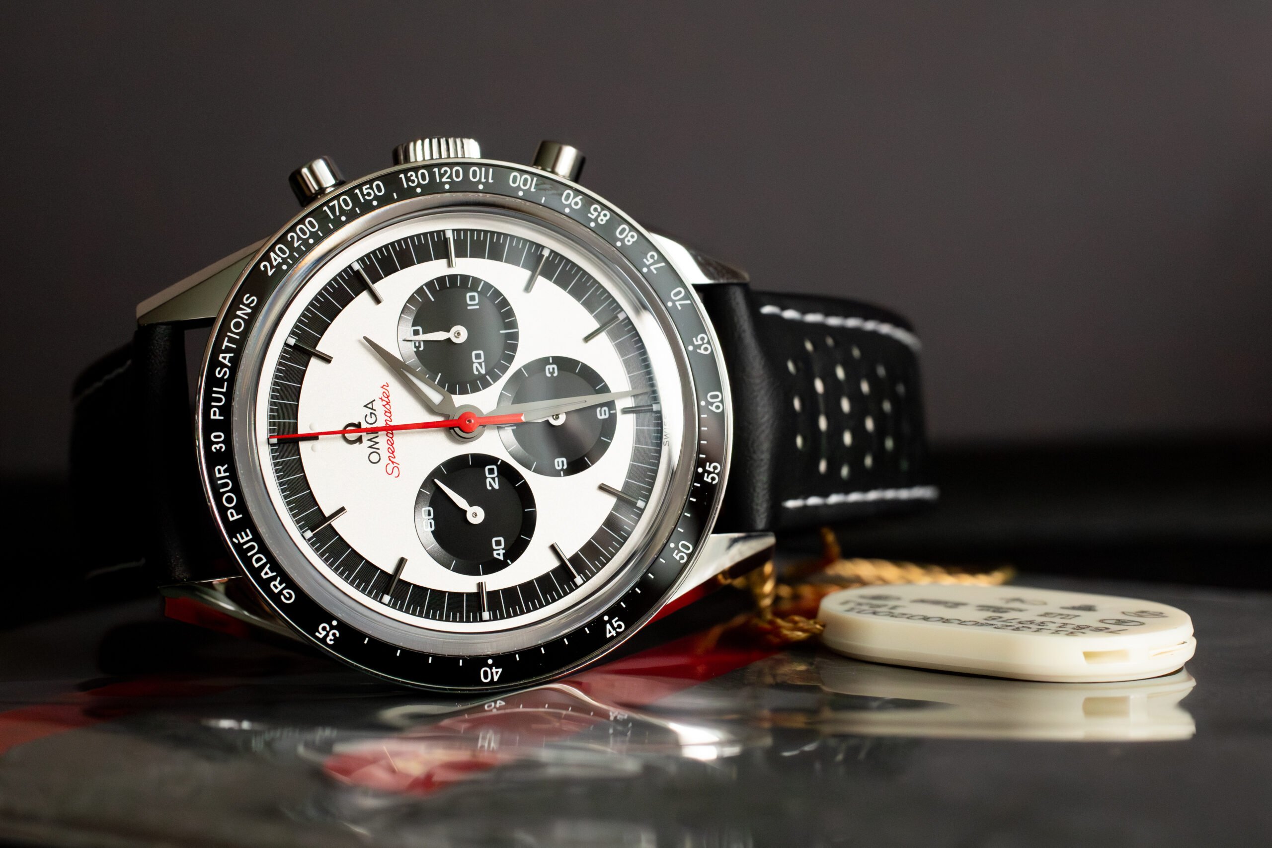 The OMEGA Speedmaster CK 2998 Anniversary Series 39.7mm (Ref. 311.32.40.30.02.001) honours the iconic 1959 original through faithful recreation limited to 2,998 pieces that captures the distinctive aesthetic elements including lightly sand-blasted silvery dial, black ceramic bezel with white enamel pulsometer scale, and varnished red chronograph seconds hand. The authentic proportions and vintage-inspired details create direct connection to one of the most legendary Speedmaster references.