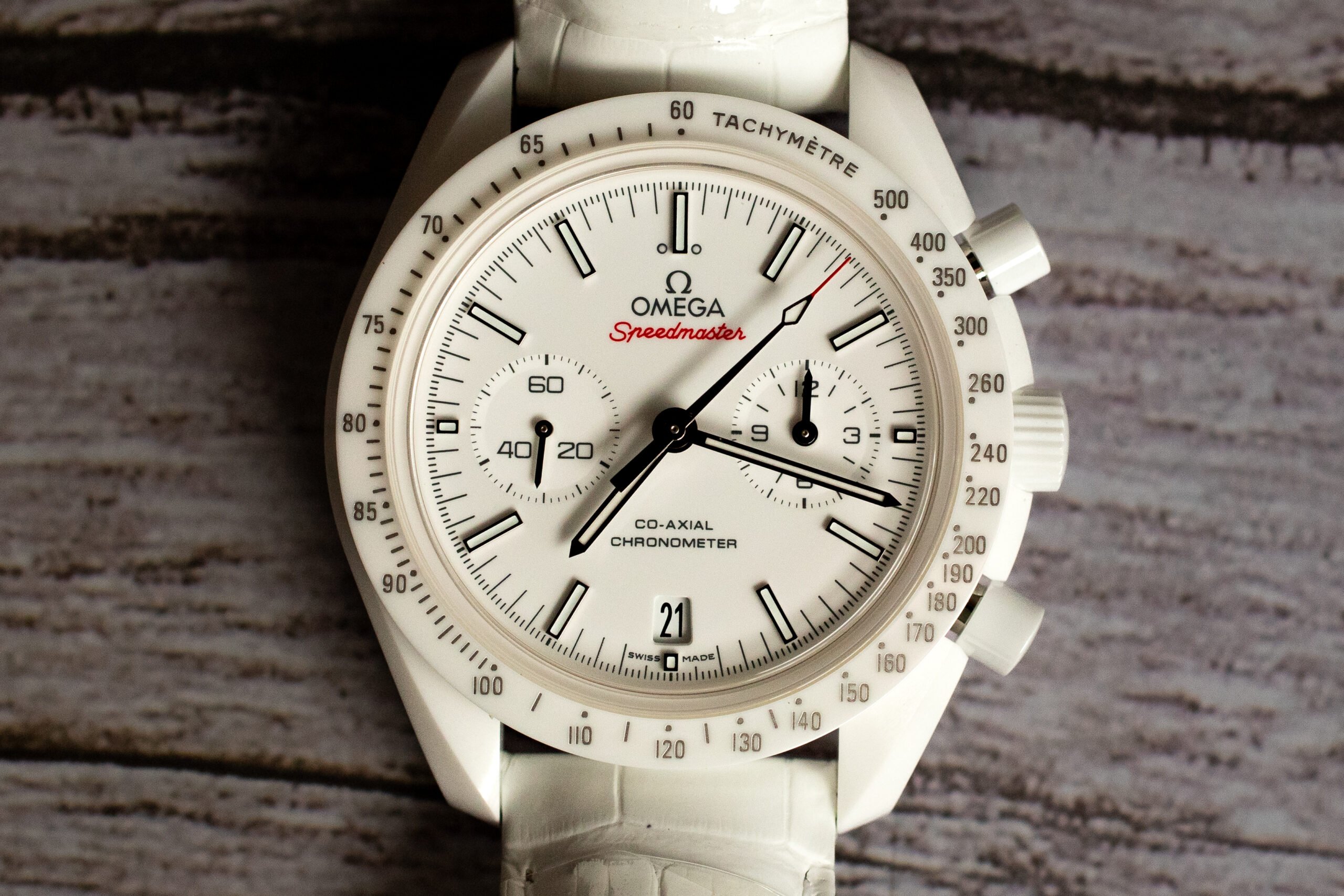 The White Side of the Moon represents pivotal advancement in ceramic horological application, demonstrating OMEGA’s ability to extend ceramic technology beyond traditional bezel use to encompass complete watch architecture including case, dial, and clasp integration. The model showcased ceramic’s potential for creating monolithic timepiece construction while maintaining complex chronograph functionality, proving that advanced ceramics could serve luxury chronograph requirements while providing superior material properties including durability, lightweight construction, and distinctive aesthetic appeal.