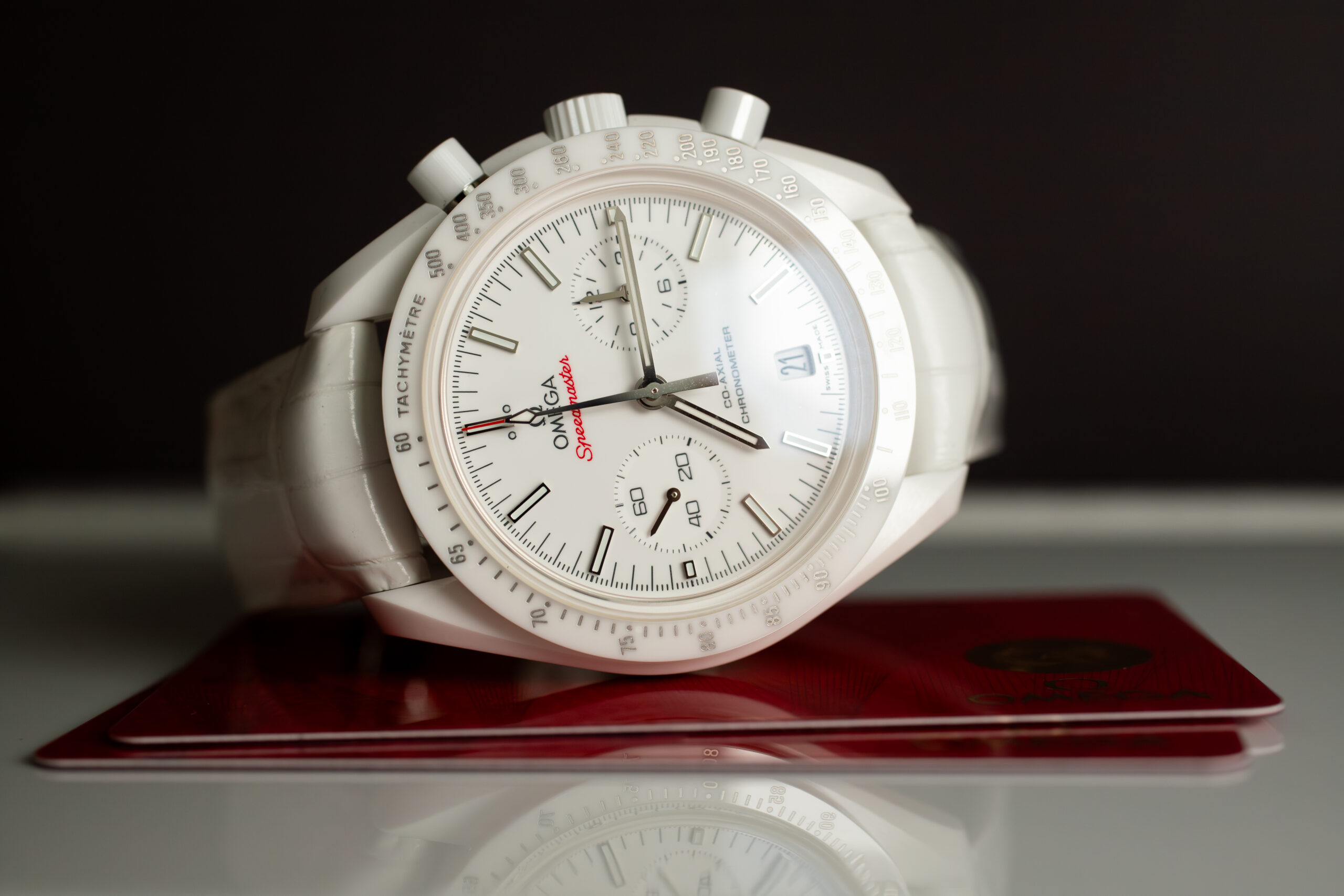 The discontinuation likely reflects OMEGA’s strategy of limiting ceramic model production to maintain exclusivity and collectable status, acknowledging that complex ceramic manufacturing processes require significant resources and specialised expertise that may not support continuous production. The White Side of the Moon represented specific moment in OMEGA’s design evolution when the brand explored ceramic possibilities beyond traditional black applications, creating distinctive model that served both technical demonstration and aesthetic exploration purposes within the Speedmaster collection.