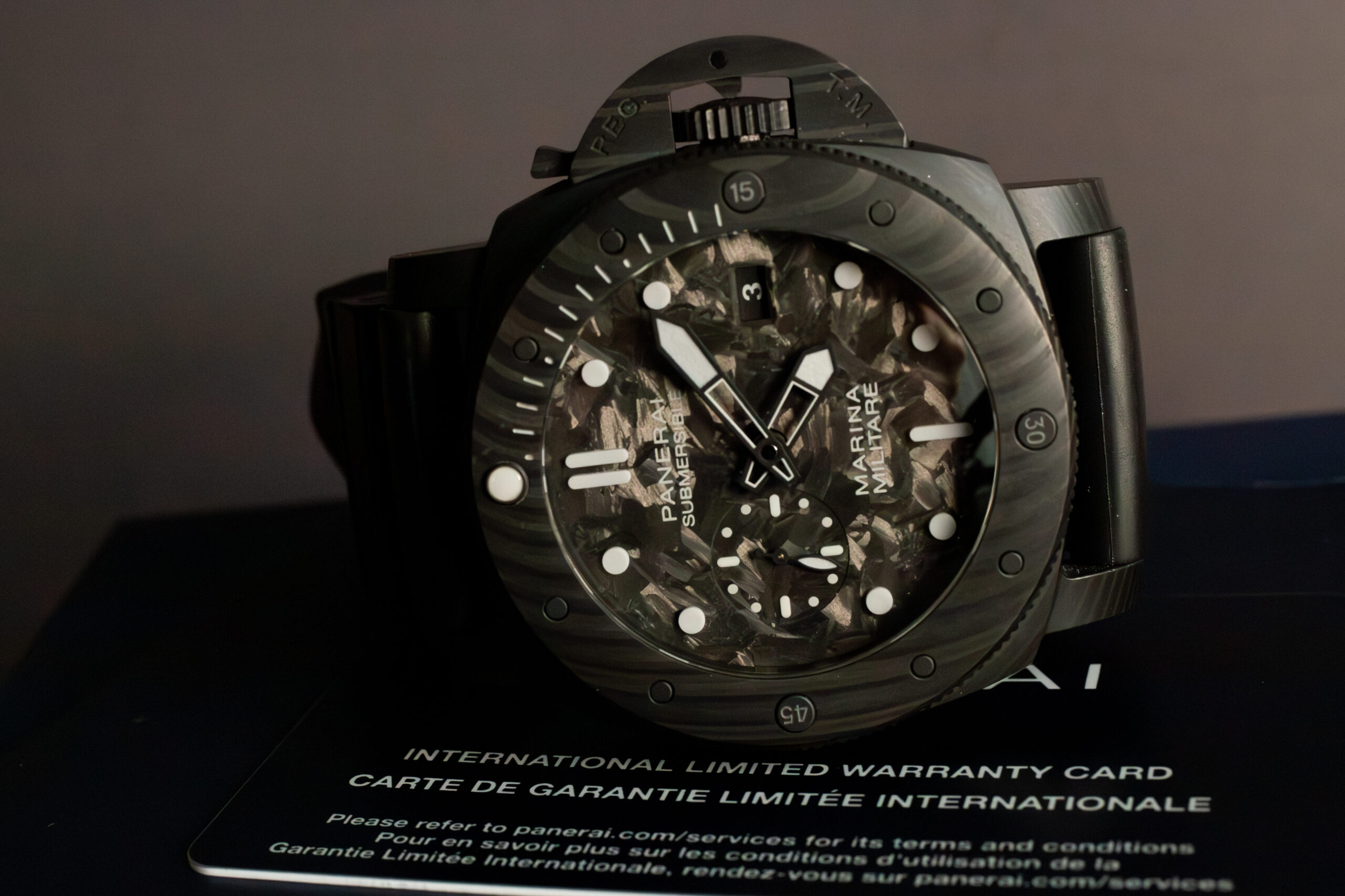 The Submersible Marina Militare Carbotech represents the pinnacle of Panerai’s military diving heritage whilst incorporating cutting-edge materials technology that demonstrates the brand’s commitment to advancing naval equipment beyond traditional construction limitations. The Carbotech™ construction creates distinctive tactical positioning that serves both operational capability and materials innovation compared to conventional steel military alternatives. The Marina Militare designation ensures authentic Italian Navy validation whilst embracing contemporary materials advancement.