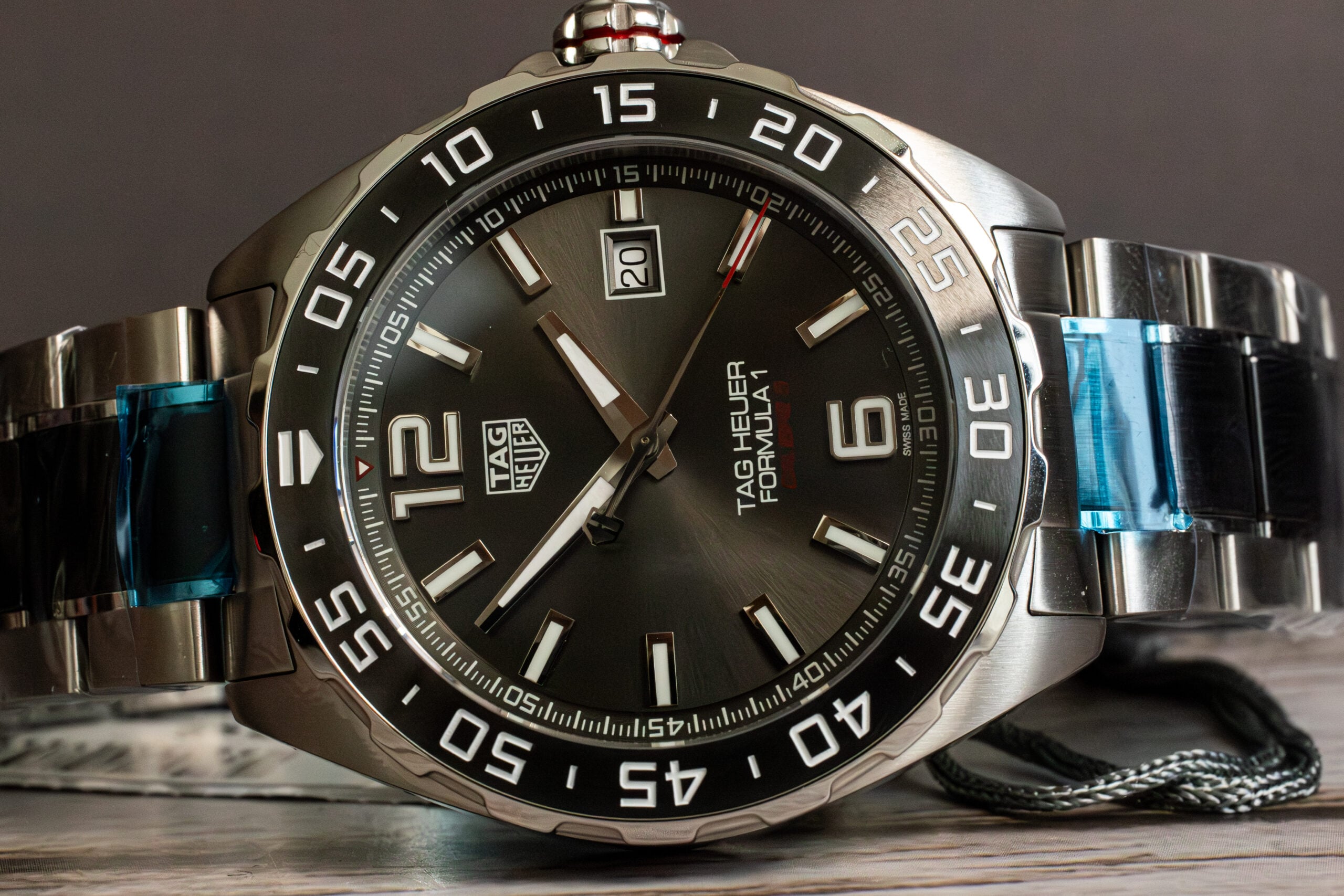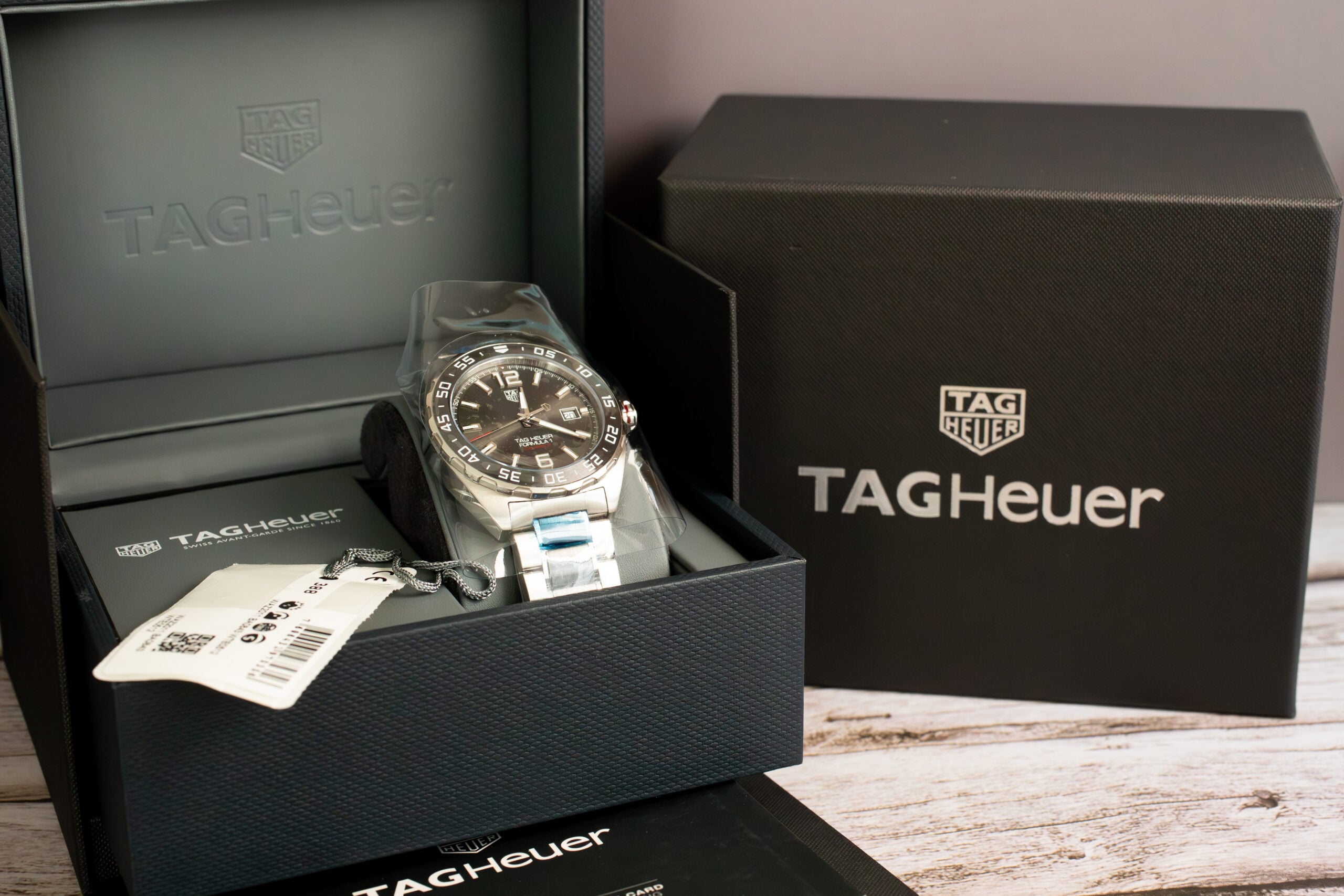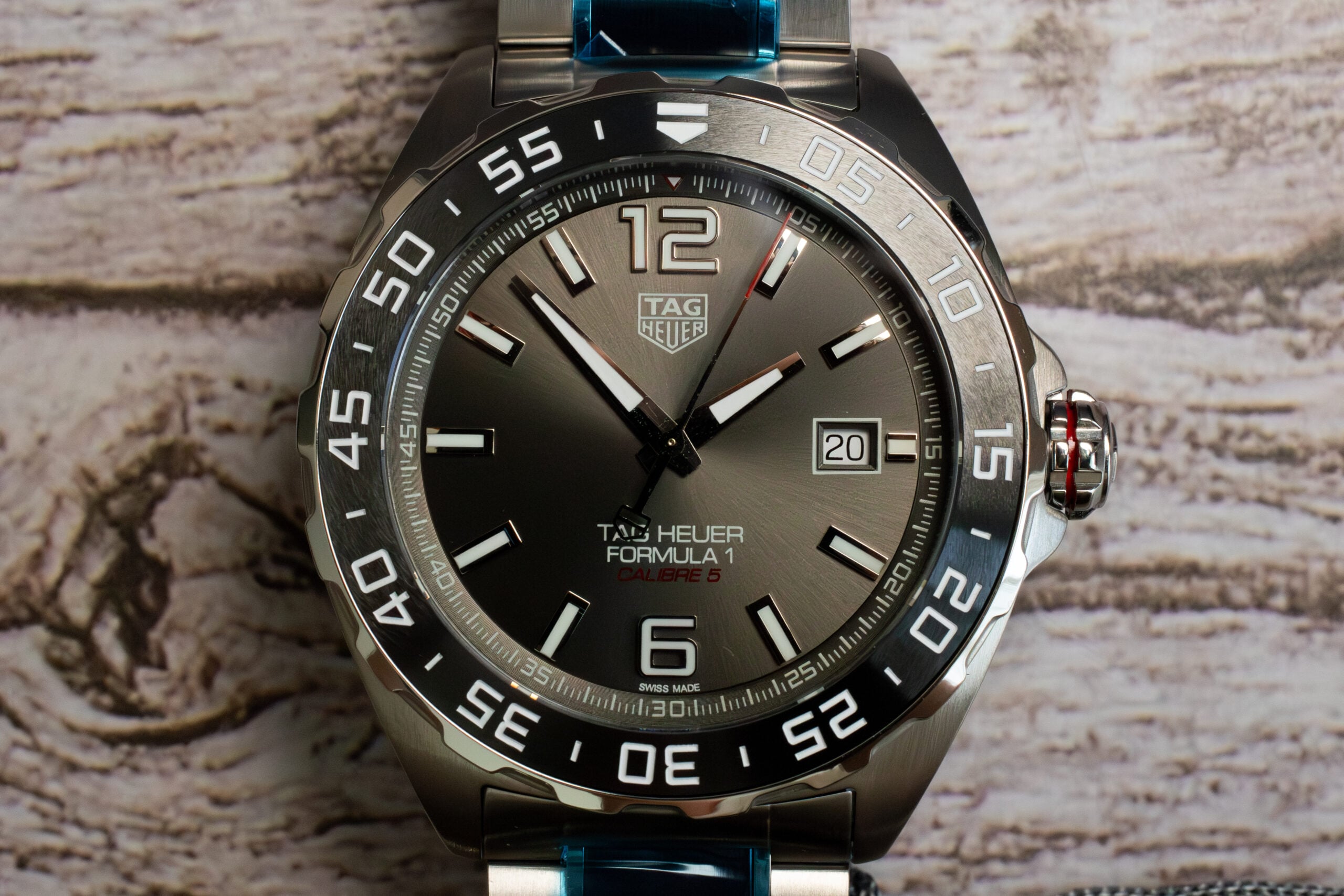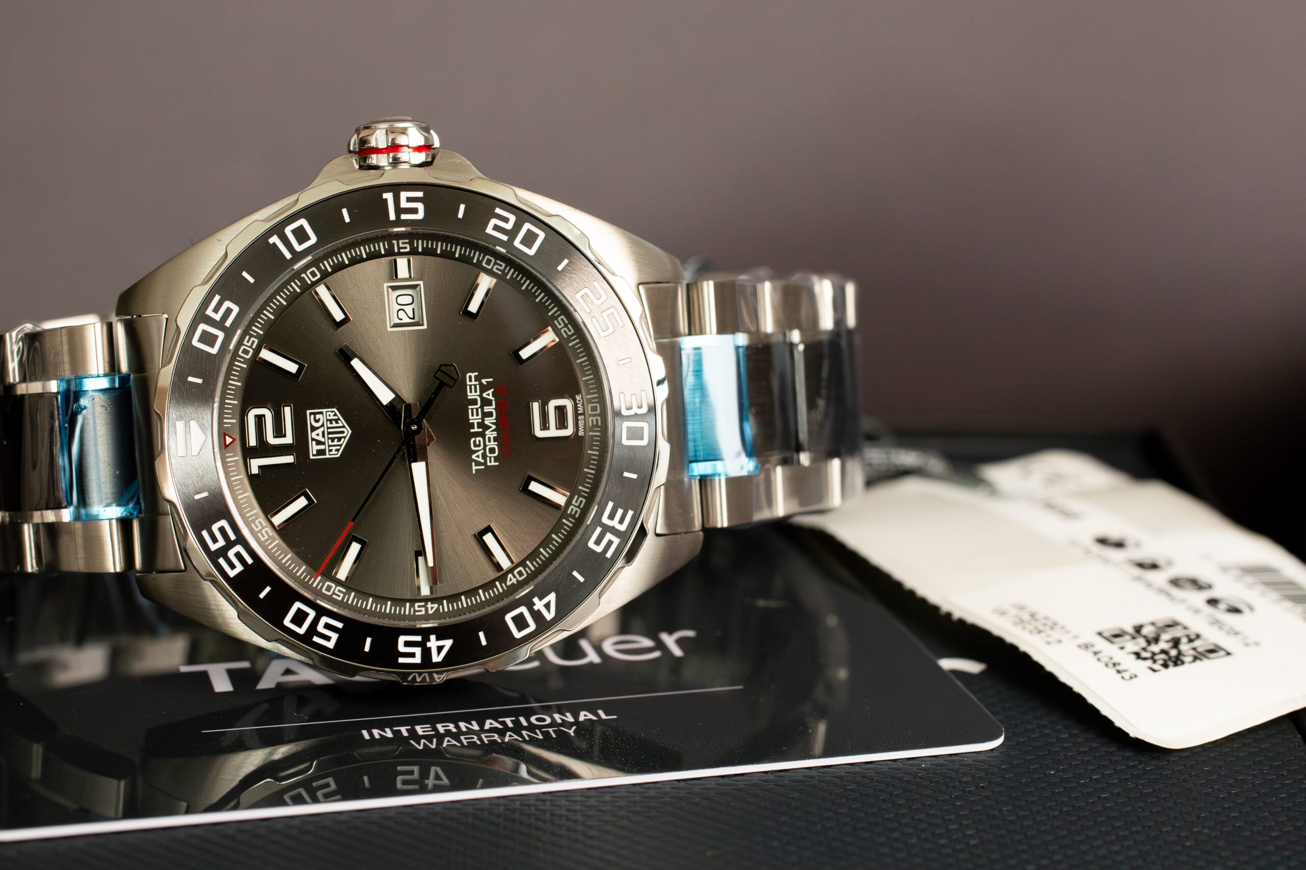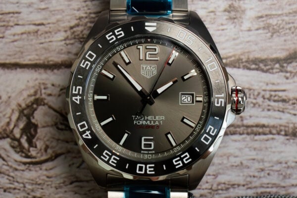 The TAG Heuer Formula 1 Calibre 5 43mm (Ref. WAZ2011.BA0843) delivers urban masculine character through grey sunray brushed dial and fine-brushed and polished steel-and-ceramic bracelet construction. As Official Timekeeper of Formula 1, this robust endurance machine showcases proven Calibre 5 automatic movement designed for lasting performance whilst the oversized 12 and 6 numerals ensure optimal readability in all conditions.