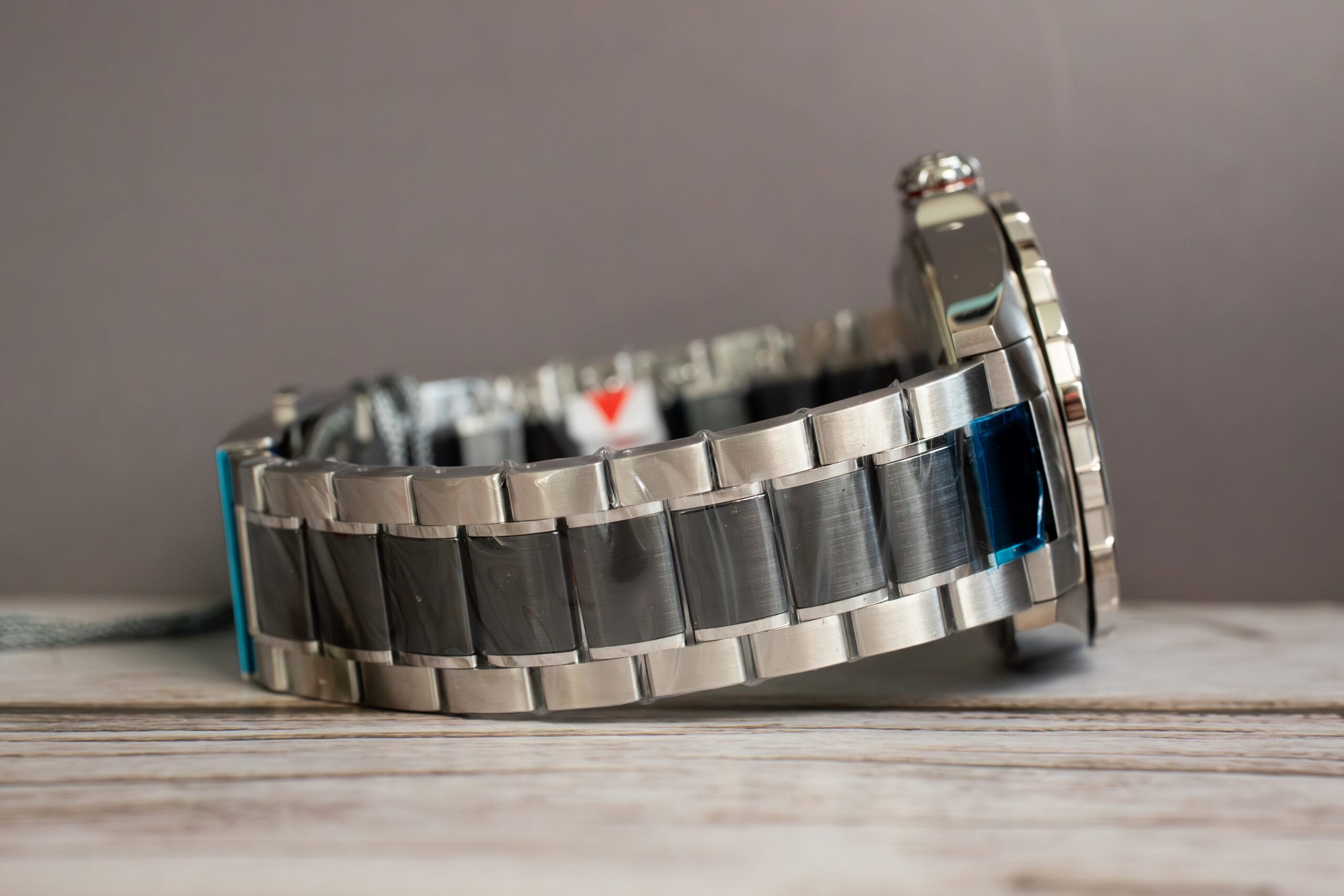 The steel-and-ceramic bracelet with fine-brushed and polished finishing creates durable construction whilst the folding clasp with push buttons ensures secure attachment. The 200m water resistance covers serious sporting activities whilst the screw-down crown maintains protection integrity.