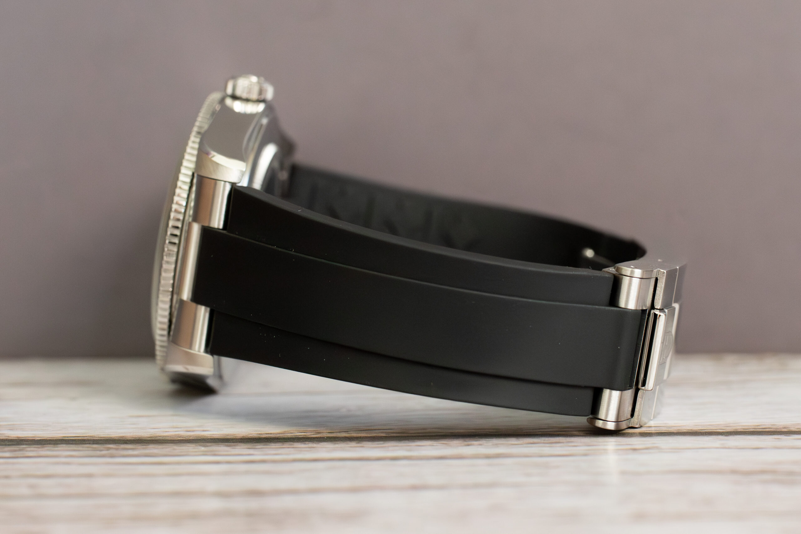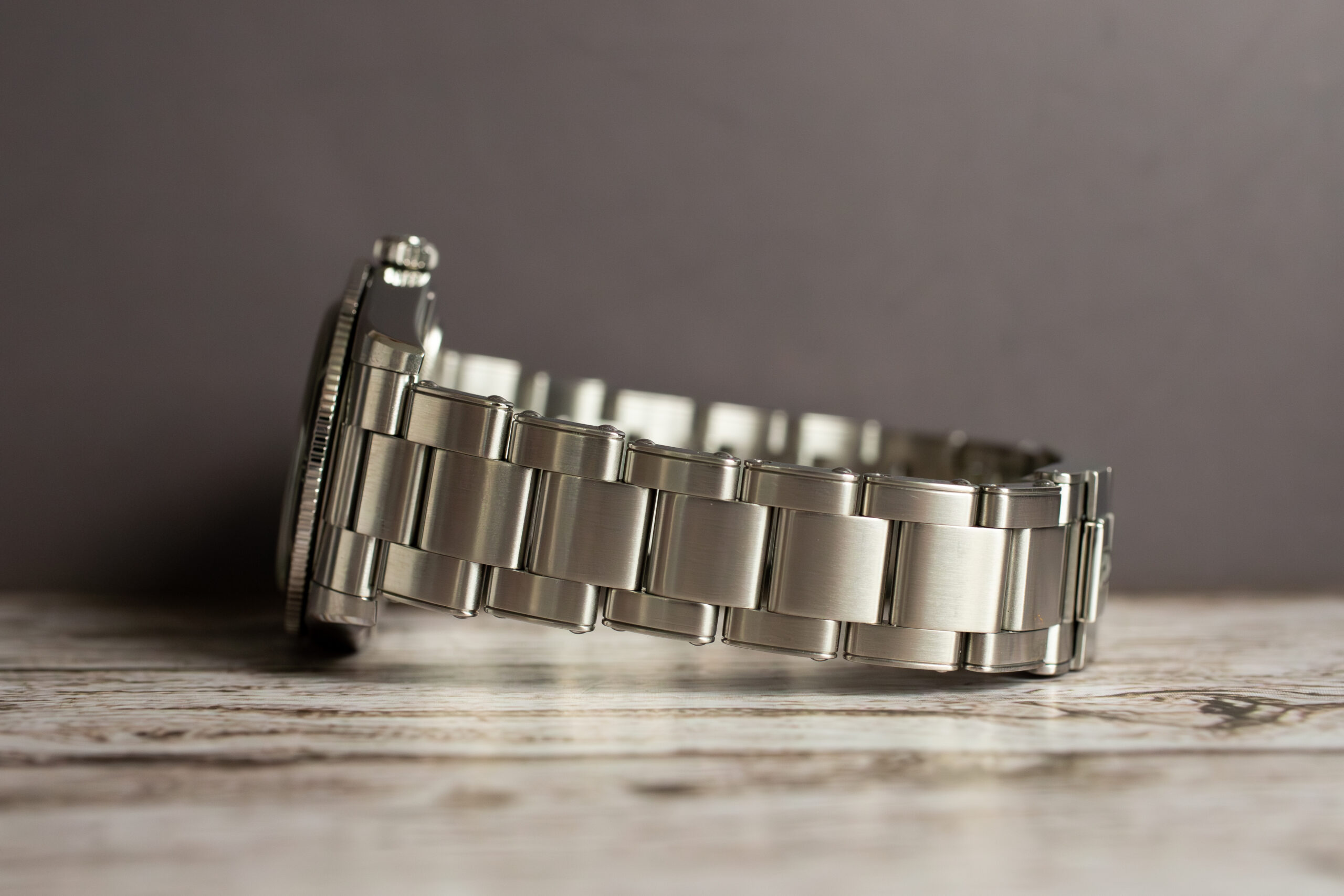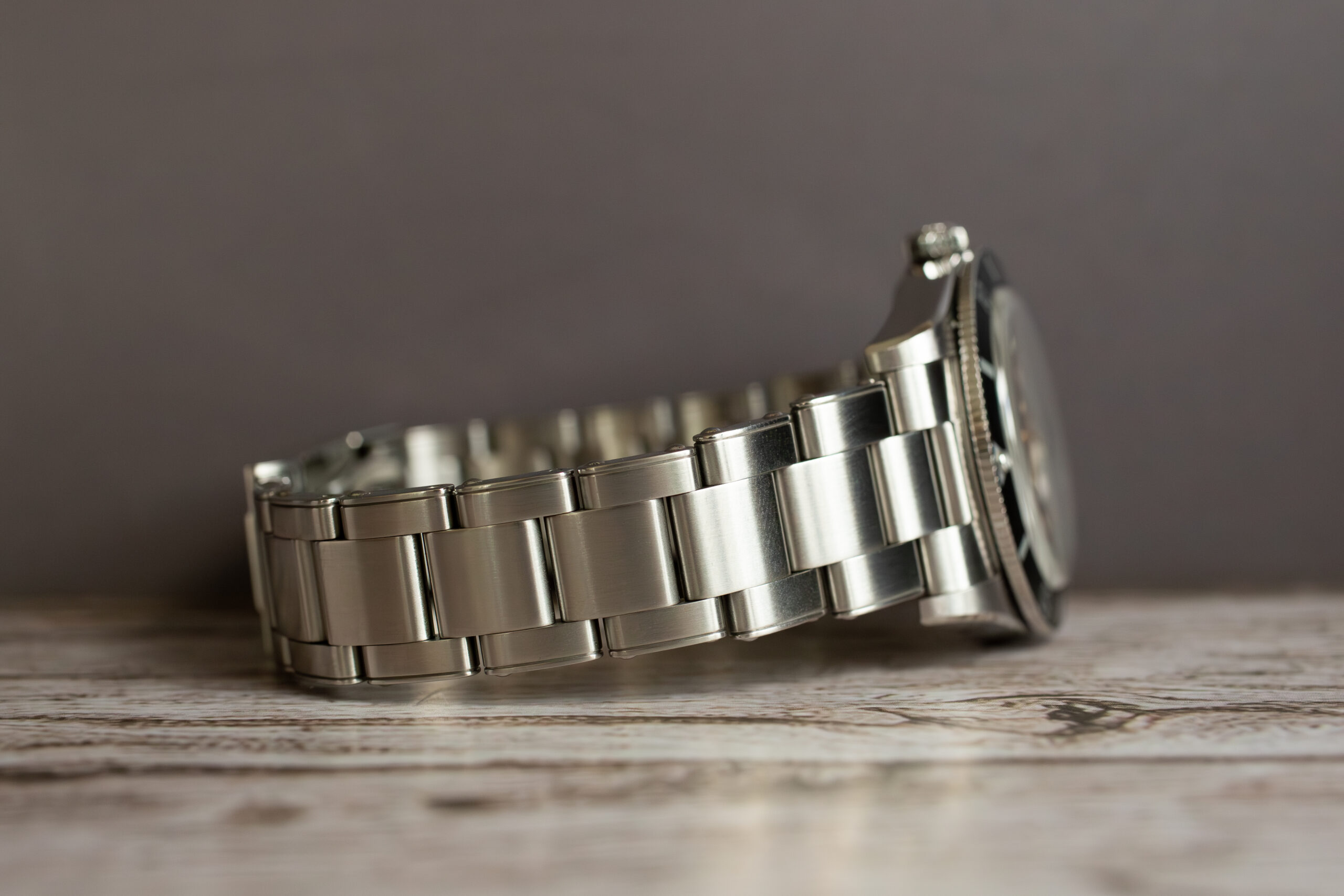 At 37mm with 11.2mm thickness, this provides elegant vintage profile through authentic 1950s proportions that create harmonious aesthetics absent in oversized modern interpretations. The clean bezel without hash marks and absence of red triangle maintain the earliest Submariner aesthetic whilst the lollipop seconds hand and pinched hand bases replicate exact 1954 specifications.