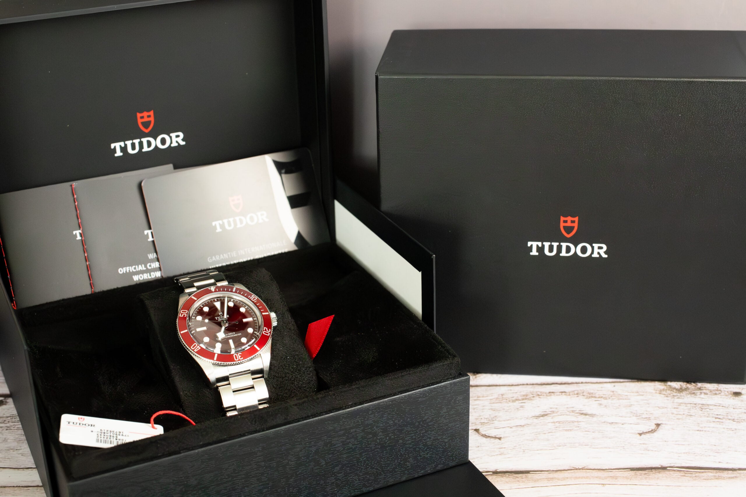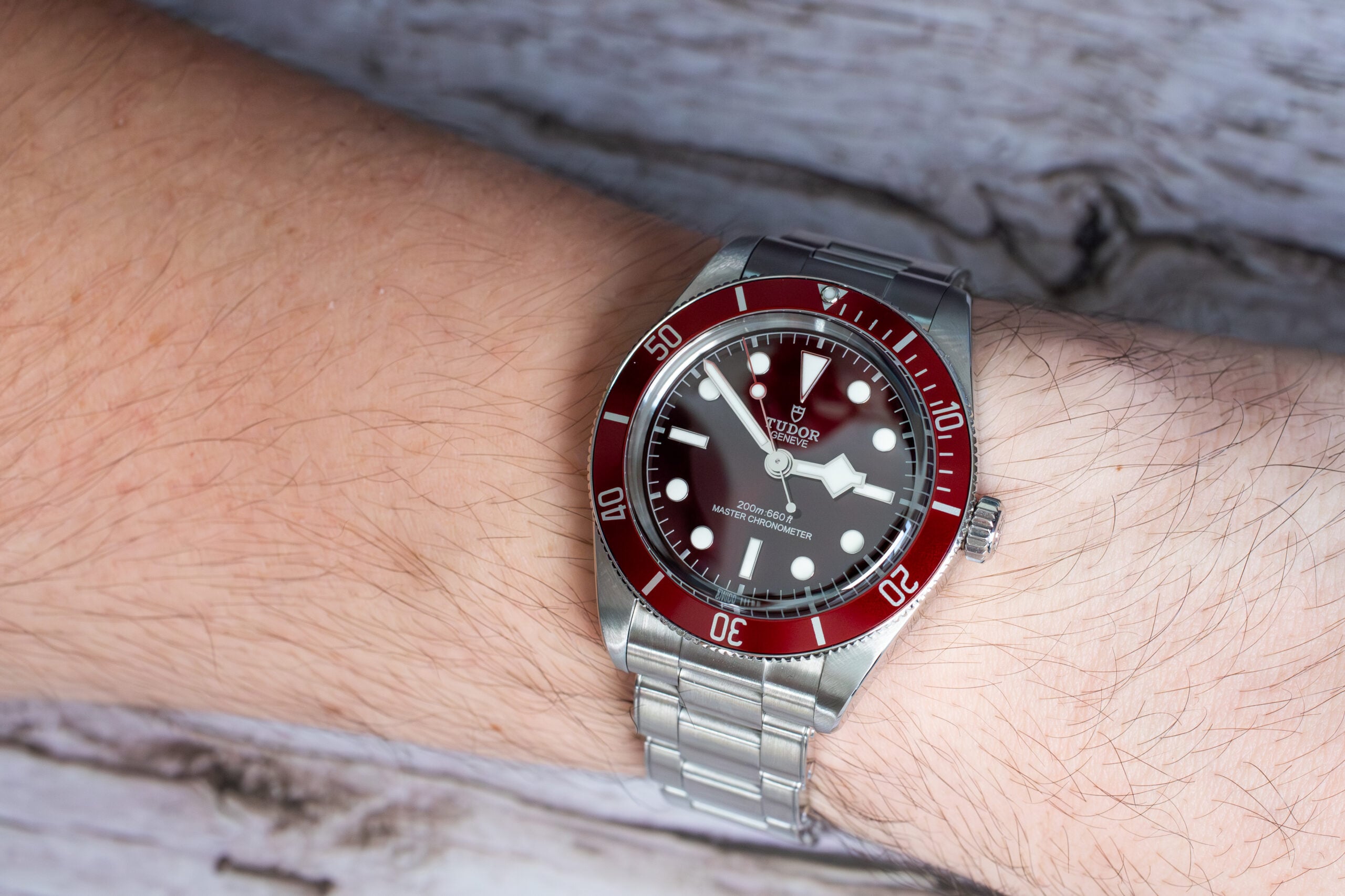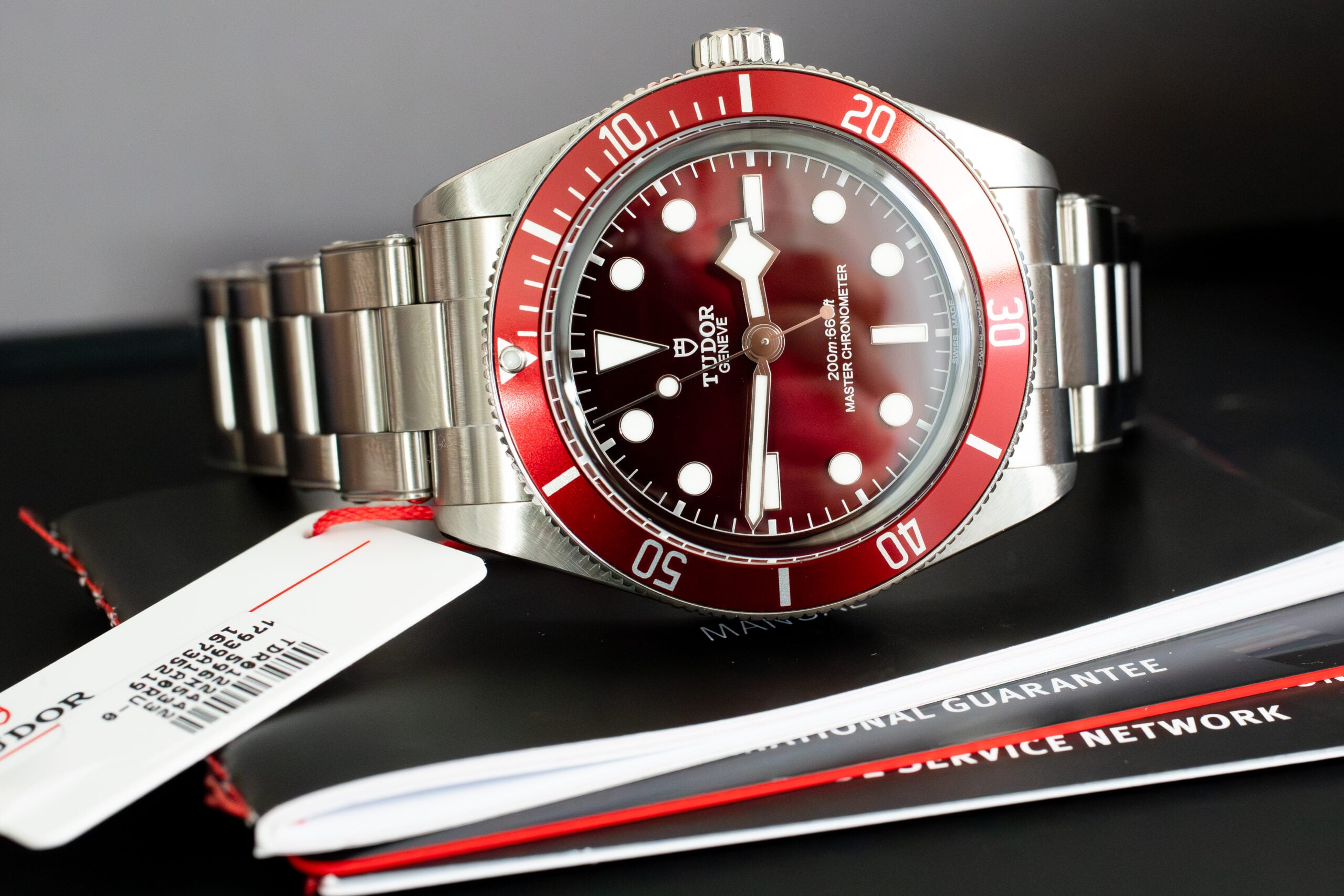 The TUDOR Black Bay 58 Burgundy 39mm (Ref. M7939A1A0RU-0002) revives distinctive burgundy aesthetic from prototype TUDOR Submariner ref. 79190 developed in the 1990s that never reached production, now realised through modern Black Bay 58 proportions with Master Chronometer certification. The burgundy unidirectional bezel with anodised aluminium insert features subtly curved numerals whilst the matching domed burgundy dial creates cohesive vintage-inspired character.