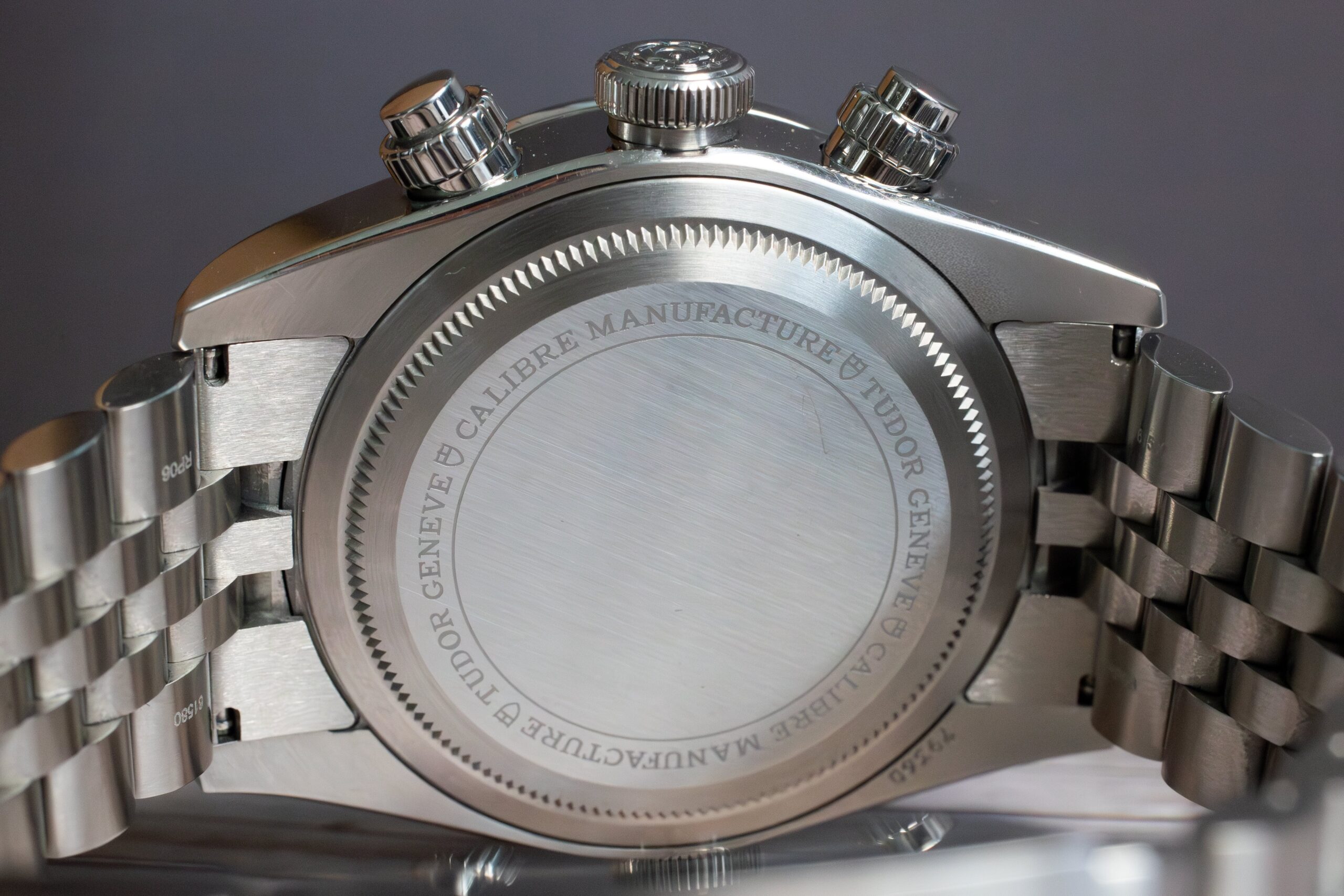 The Manufacture Calibre MT5813 delivers exceptional 70-hour power reserve through COSC certification with column wheel and vertical clutch ensuring precise chronograph operation. The tungsten monobloc rotor with openwork and satin-brushed finish alongside sand-blasted bridges demonstrates exceptional finishing typical of TUDOR Manufacture calibres.