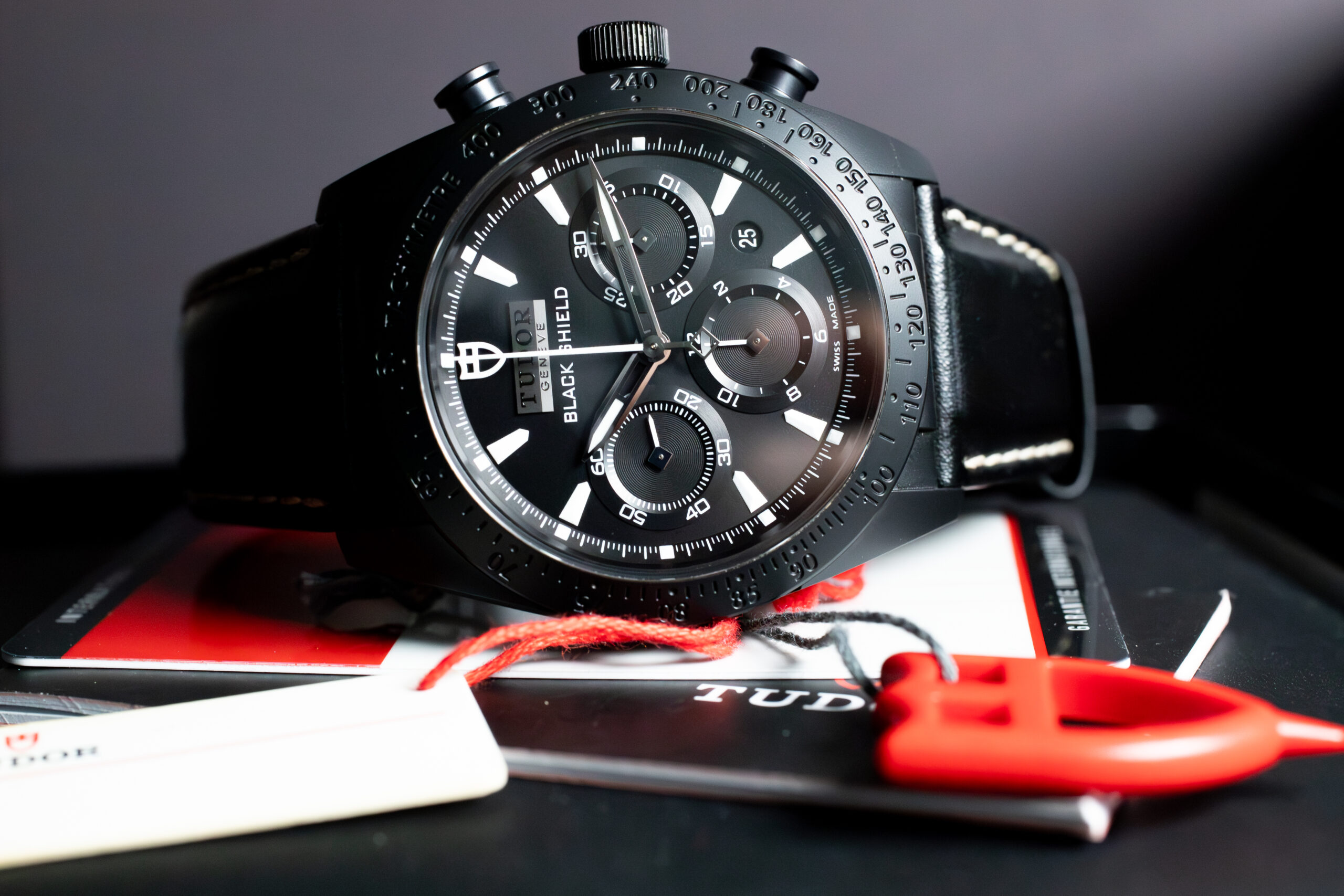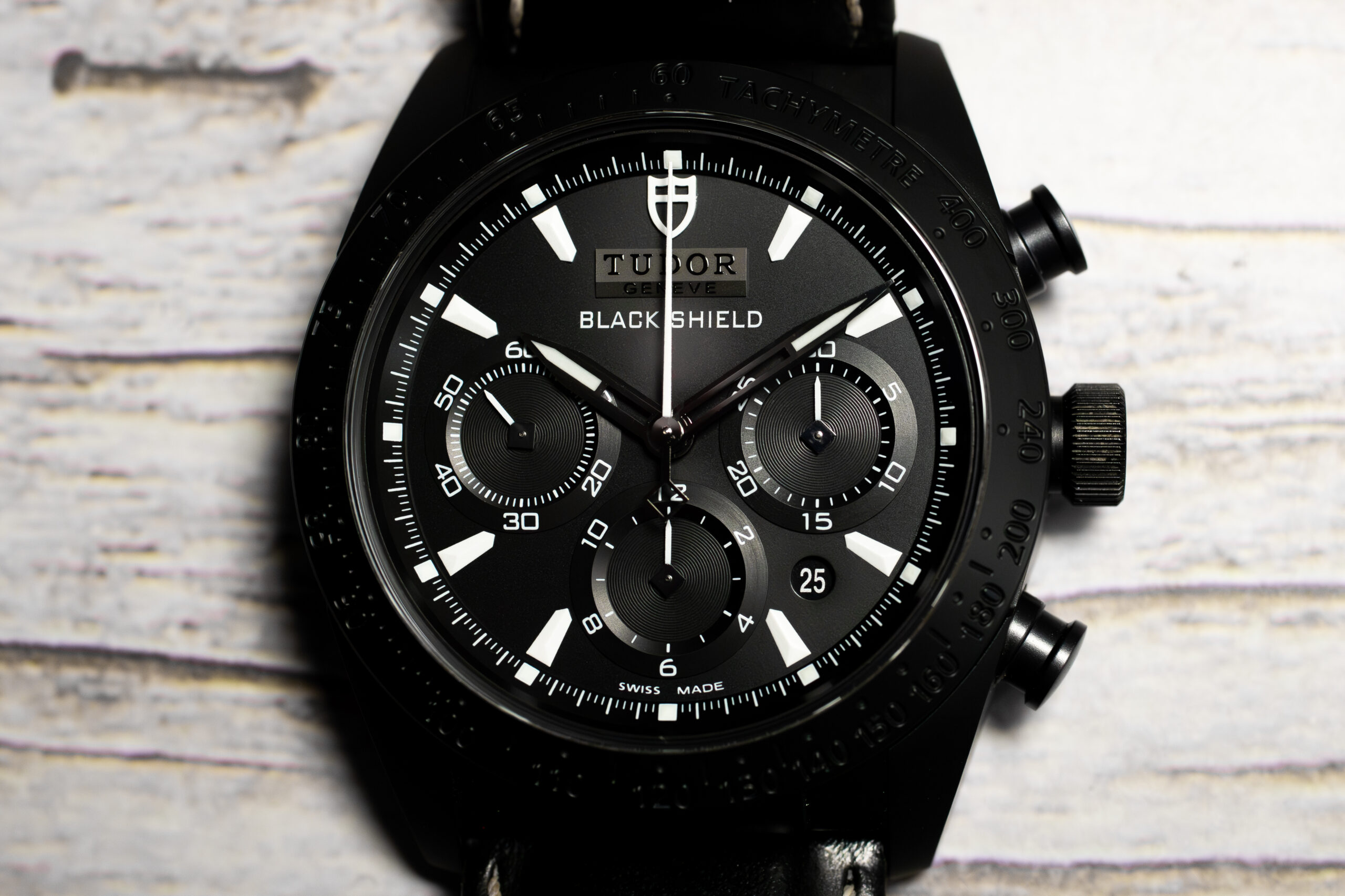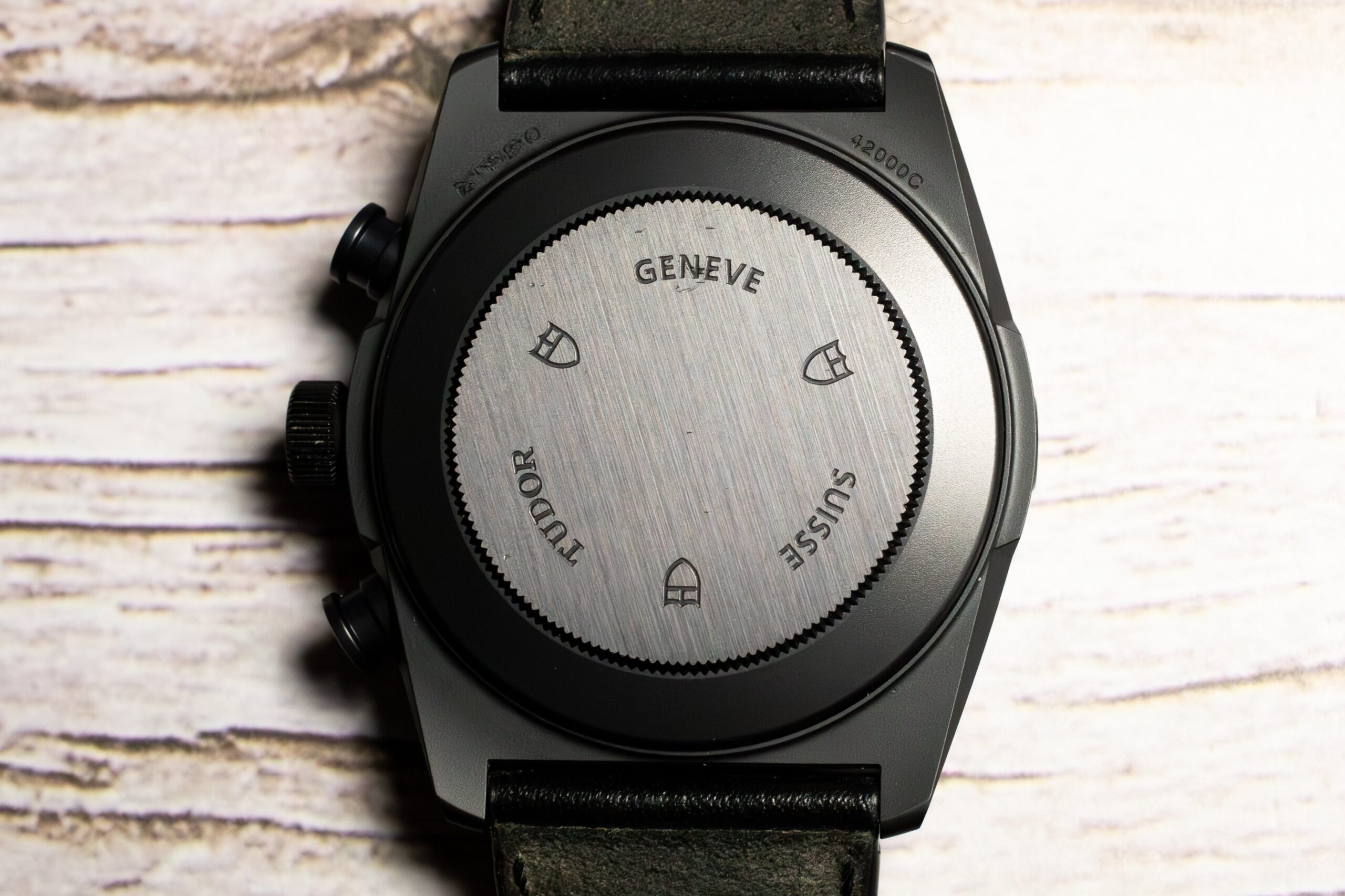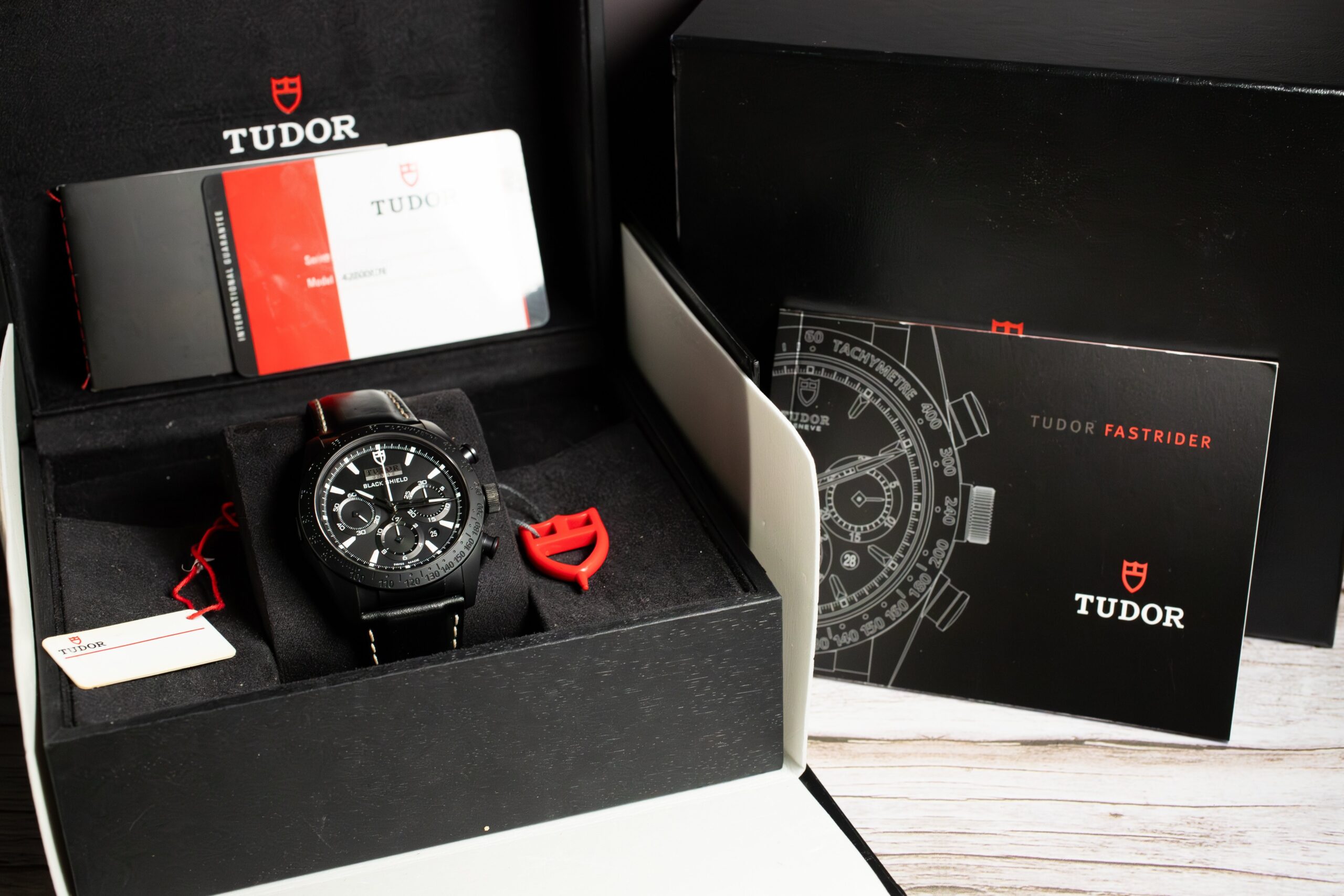 The TUDOR Fastrider Black Shield 42000CN-0017 represents pioneering achievement in monobloc ceramic construction through entirely injected high-tech ceramic case produced as single piece rather than ceramic coating applied to base material. This complex manufacturing process, developed from TUDOR’s Pelagos bezel expertise, creates exceptional reliability and scratch-proof durability whilst the matt black finish accentuates clean curves and taut chronograph lines.