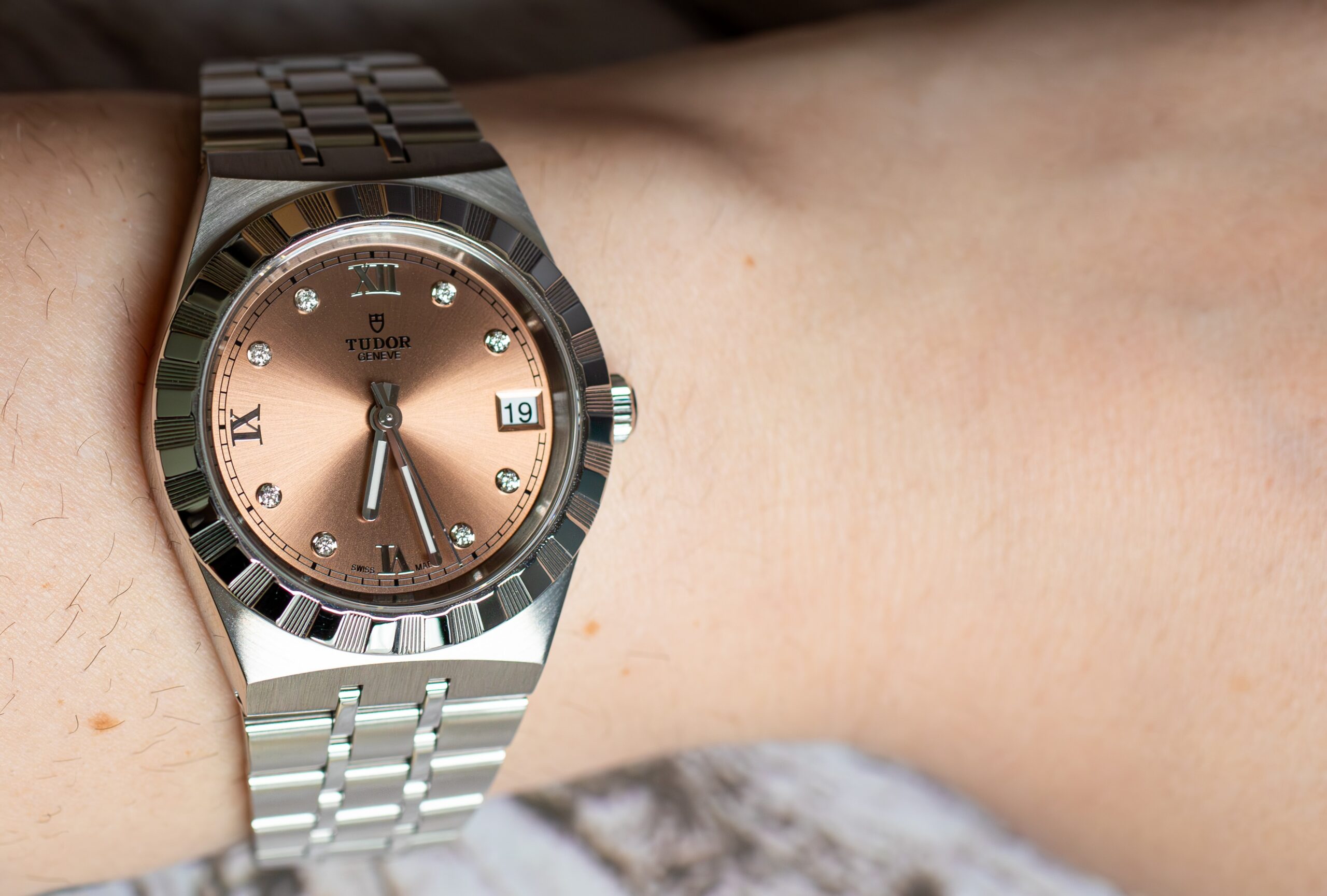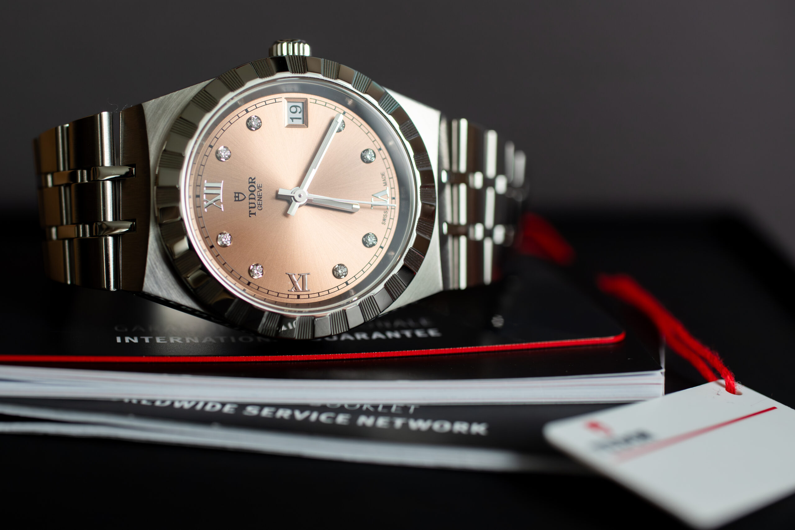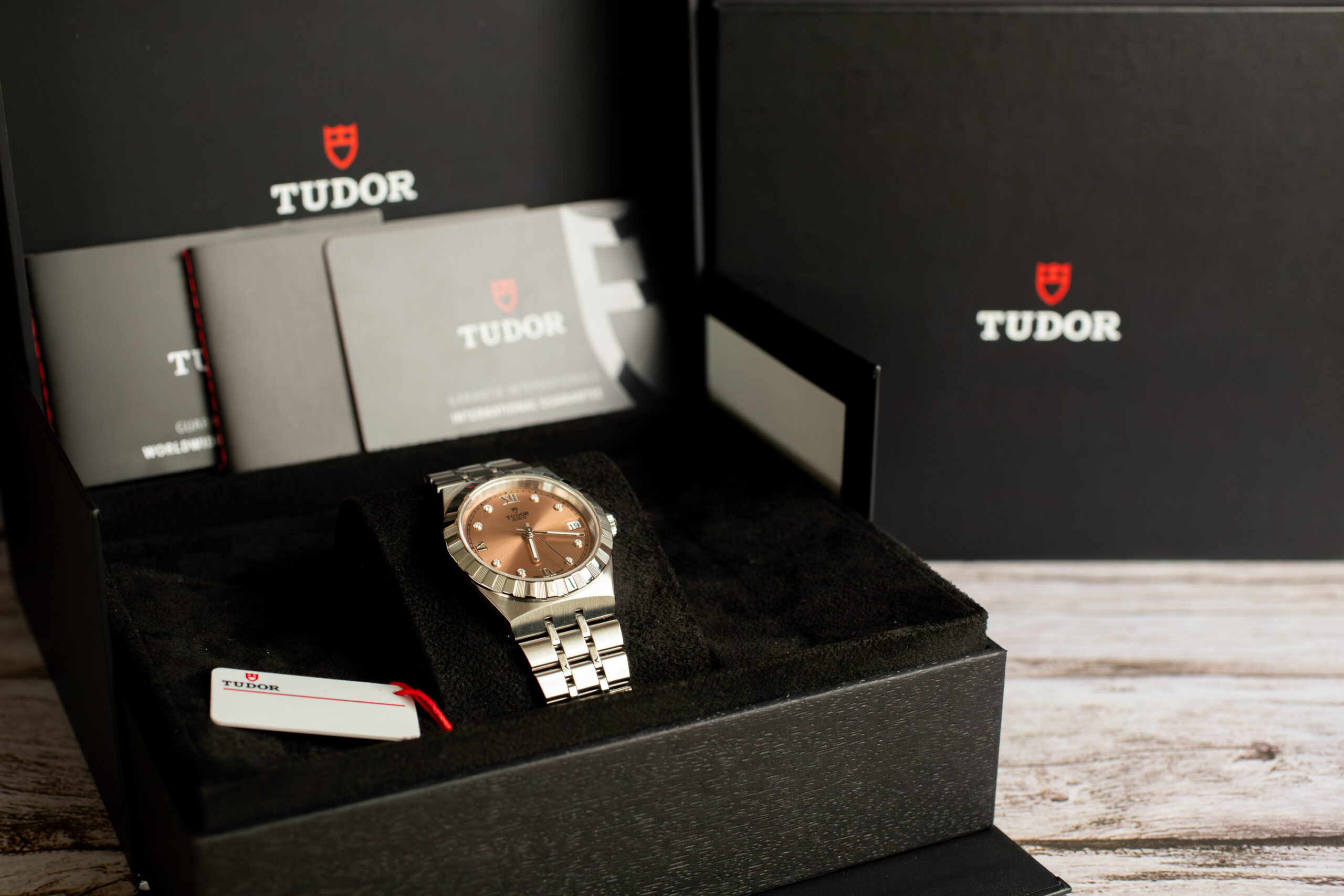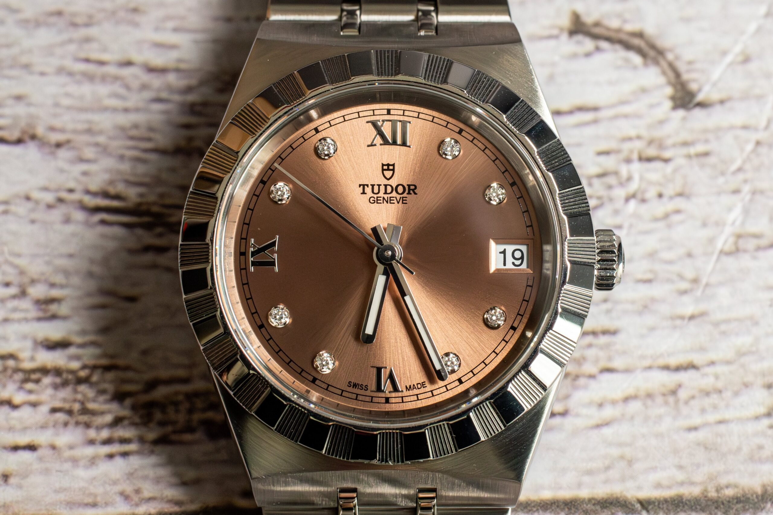 This Royal Salmon Diamond Dial suits buyers seeking refined everyday luxury with distinctive salmon dial and diamond hour markers creating sophisticated character. The 34mm proportions and “sport-chic” positioning provide versatile appeal whilst the 1950s Royal heritage and quality construction ensure the superior design standards that established the Royal name within TUDOR’s distinguished collection.