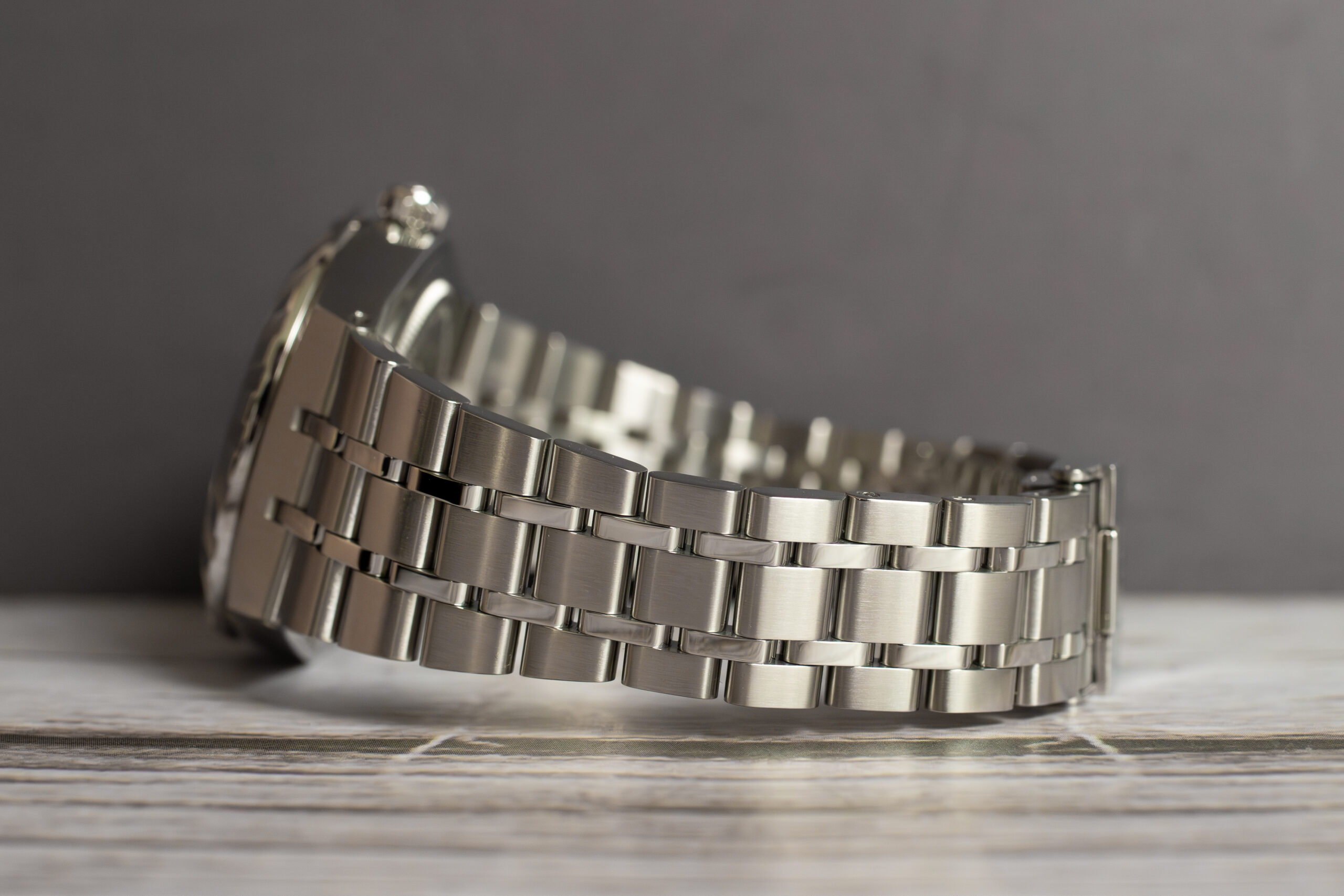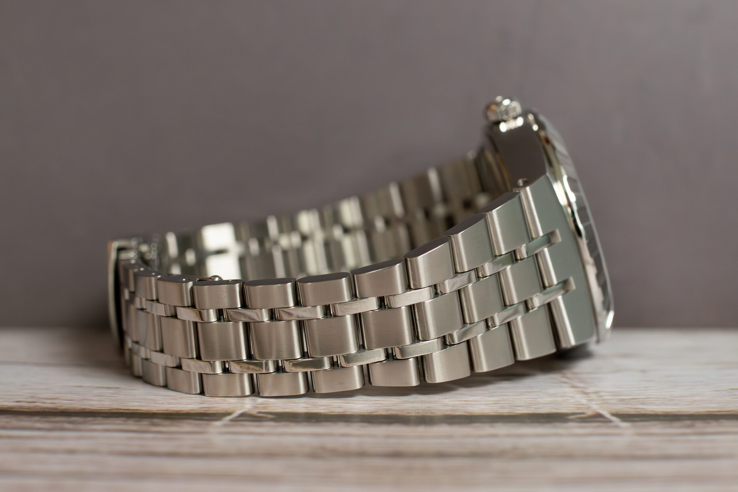 At 34mm with refined proportions through 316L stainless steel construction, this provides elegant presence through mix of polished and satin finishes whilst the notched steel bezel with alternating cut grooves and polished finish creates distinctive character. The salmon dial with sunray brushed finish offers warm sophistication whilst the diamond-set markers elevate the luxury appeal.